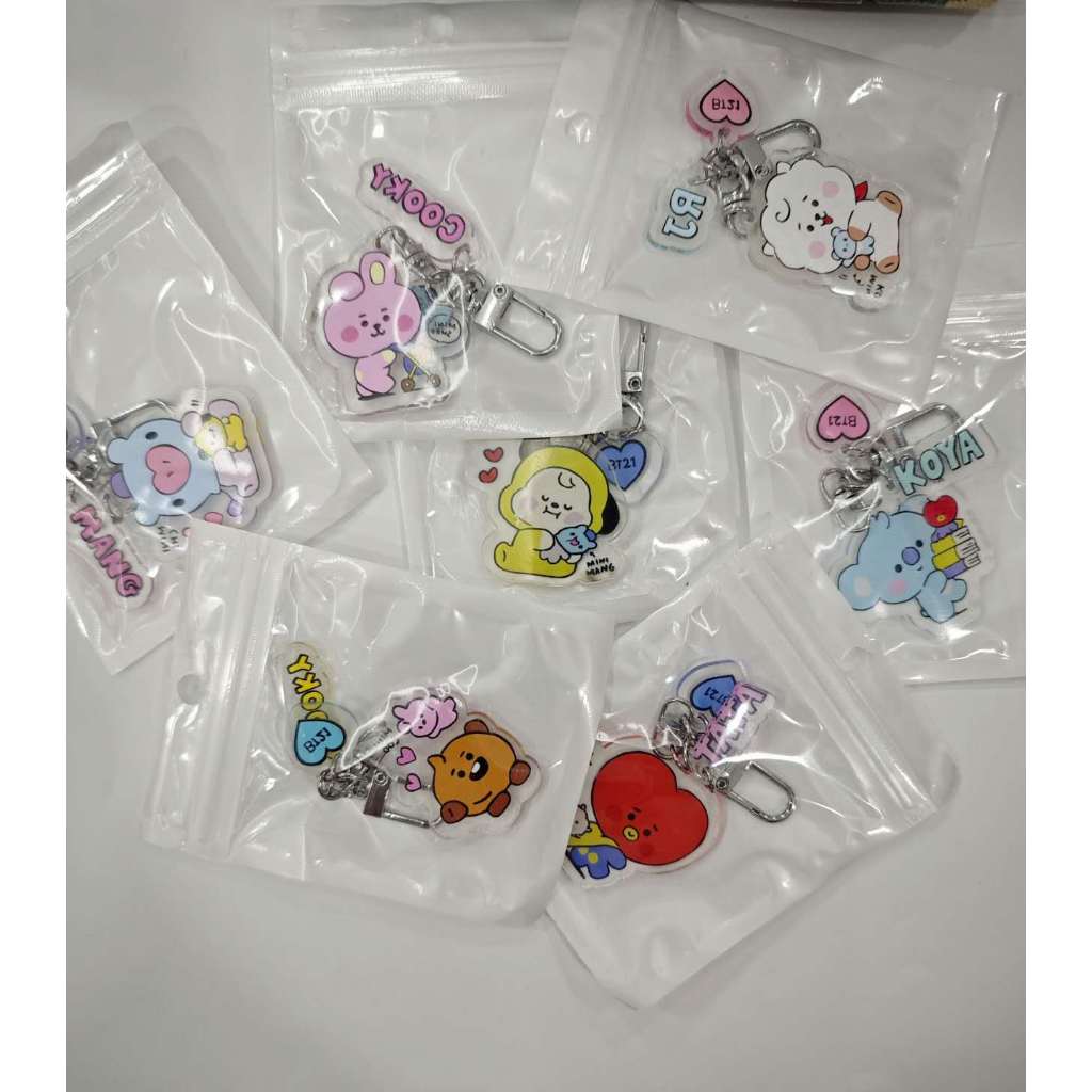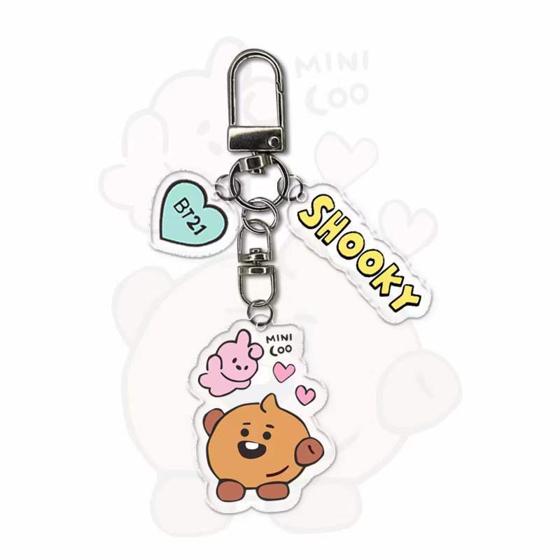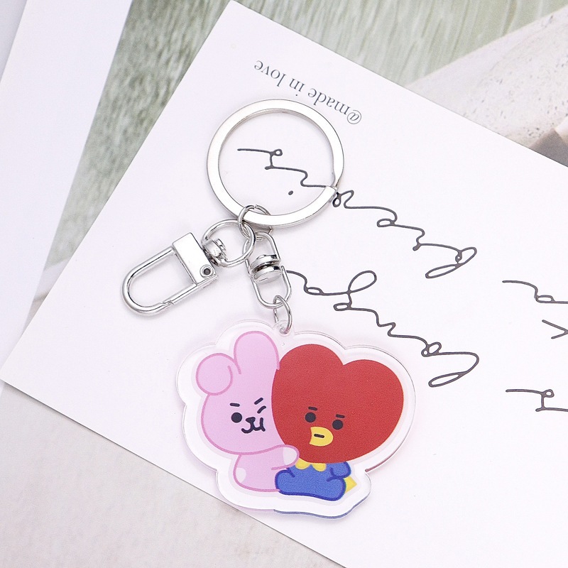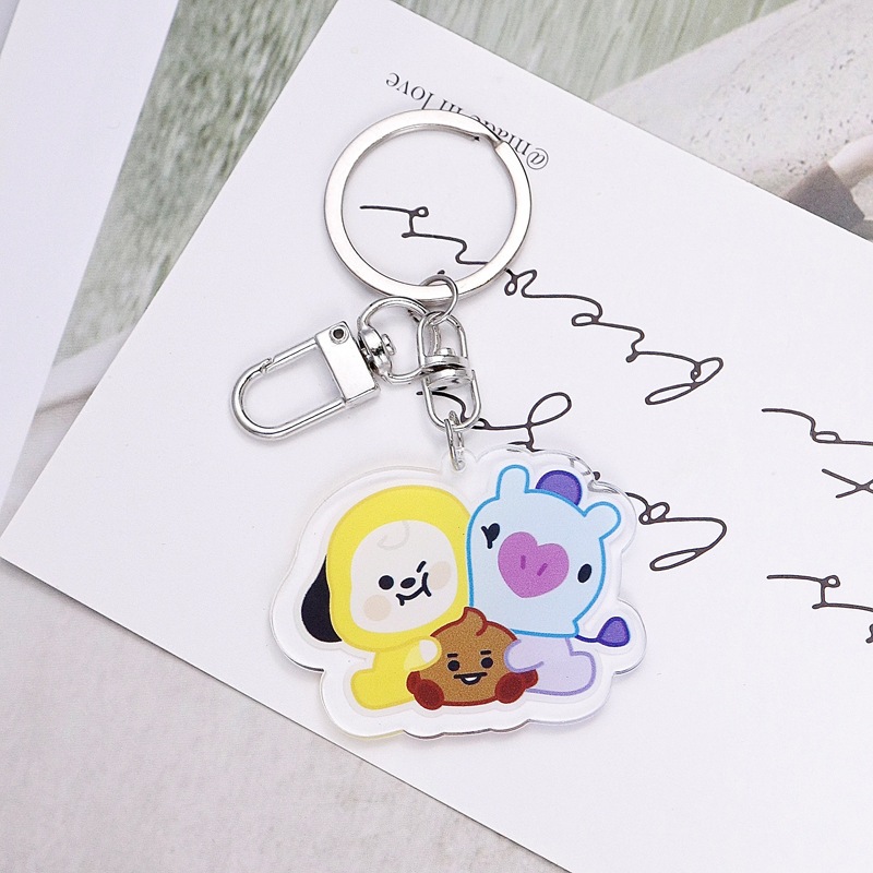 Chaveiro Com Pingente Flores De Acrílico Dupla Face Do BTS BT21