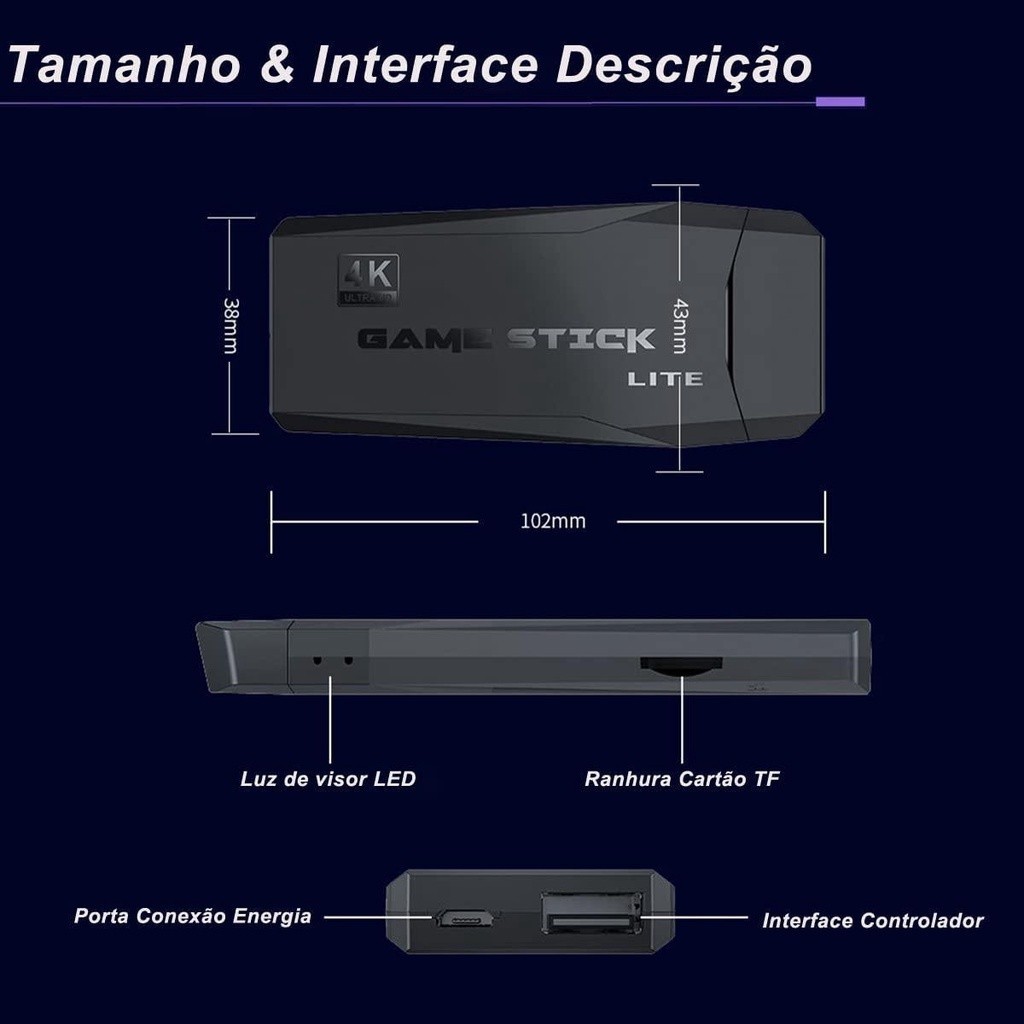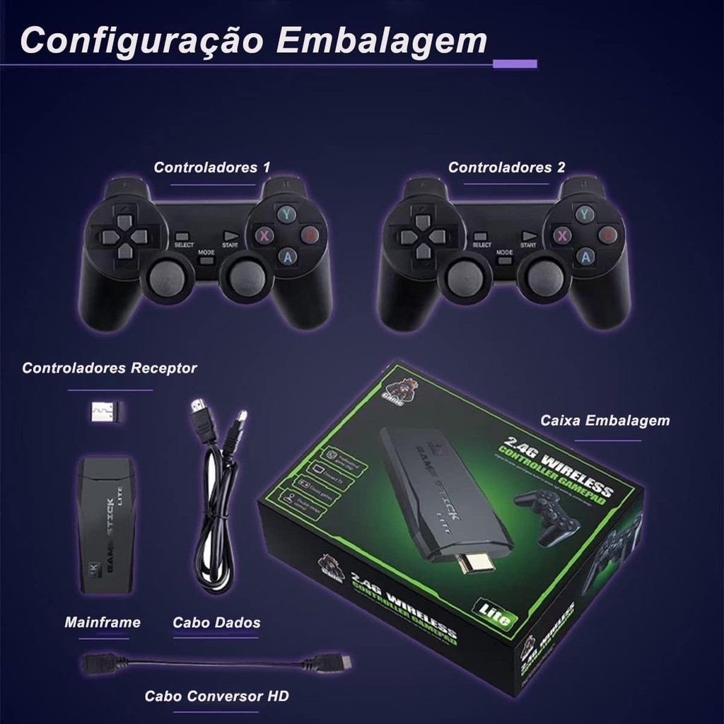 Video Game Stick 4K 64Gb 10Mil Jogos Retro 2 Controles Sem Fio