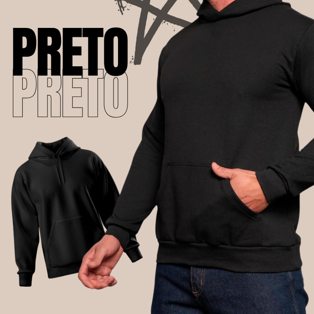 MOLETOM BLUSA DE FRIO CAQUI CANGURU 100% ALGODAO LISO COM CAPUZ UNISSEX