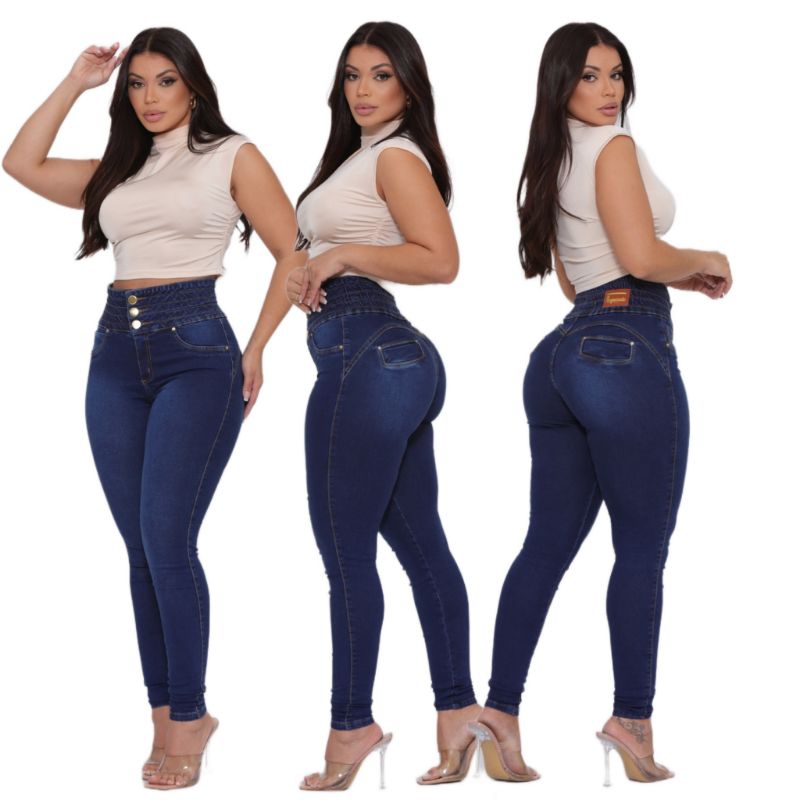 Calça Jeans Feminina Com Elástico No Cós Empina Bumbum Modeladora