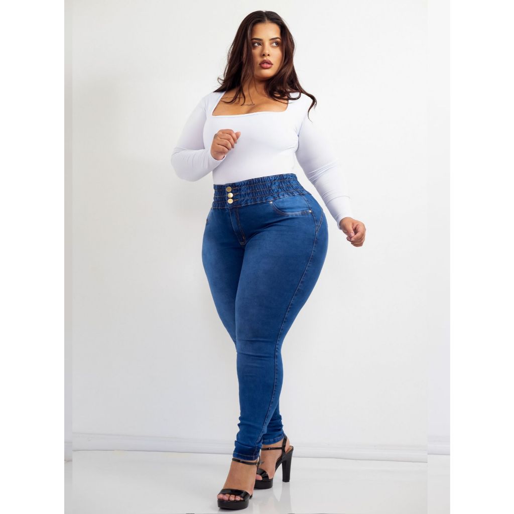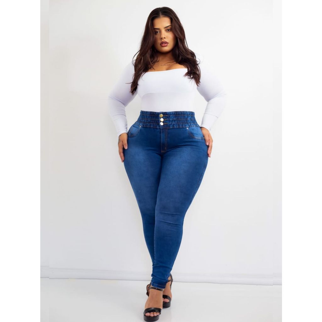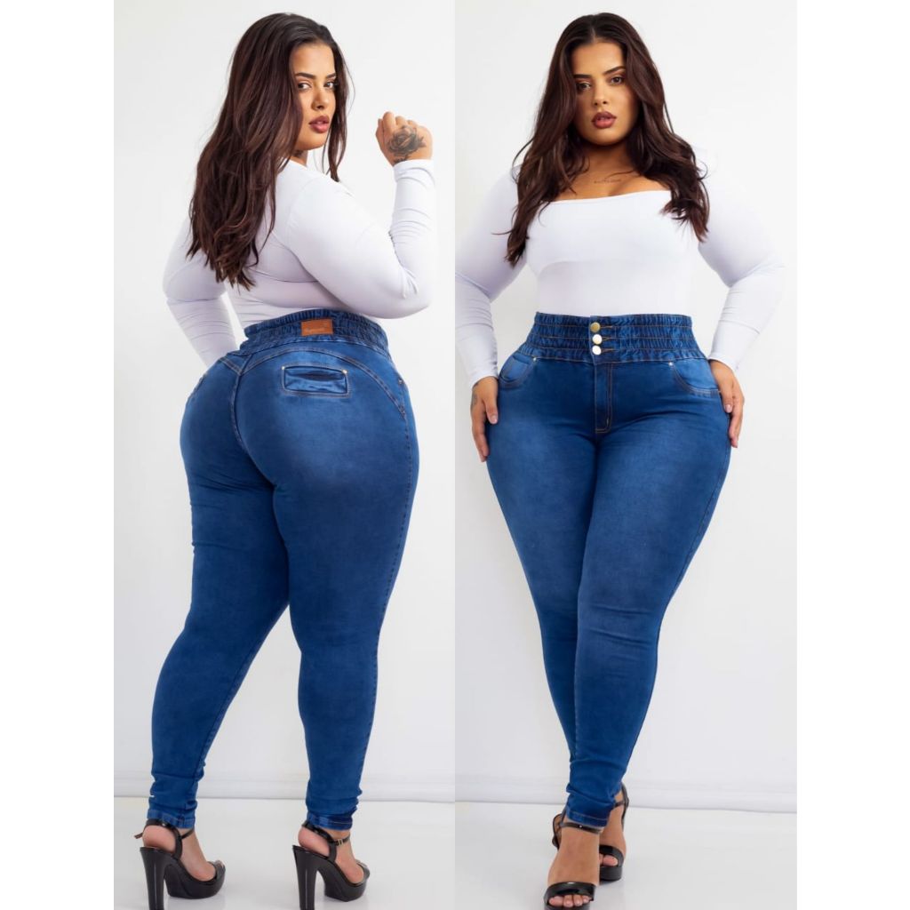 Calça Jeans Plus Size Cintura Alta 3% de Lycra