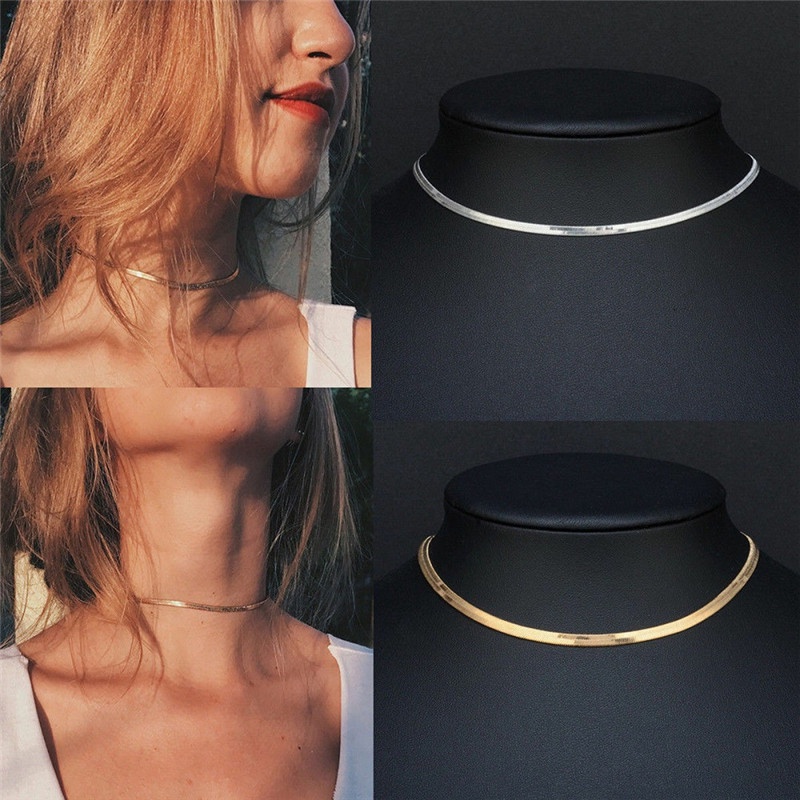 Colar Mulher Moda Simples Elegante De Ouro Cadeia De Jóias Colar Gargantilha Com Formato De Cobra 925 Prata
