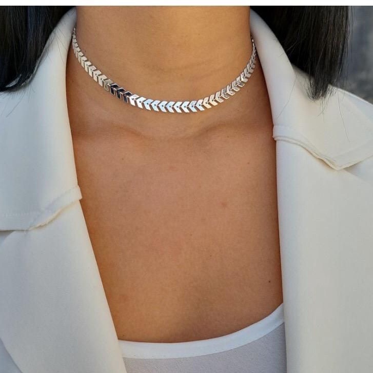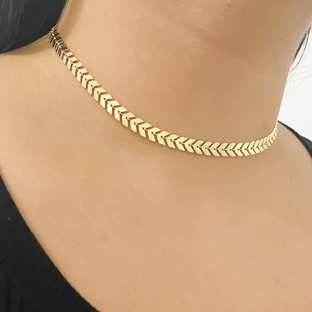 Colar Choker Escama De Peixe Folheado A Ouro 18K E Prata 925
