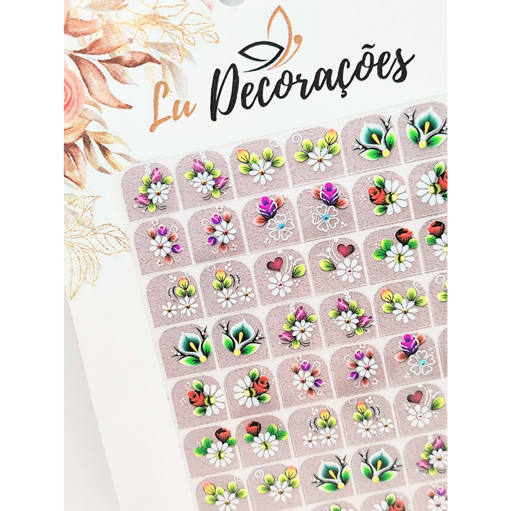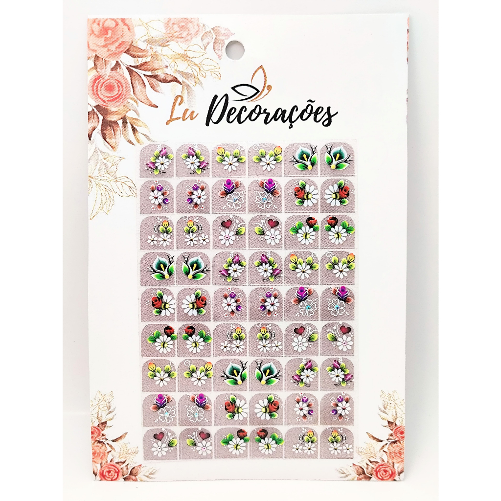 54 Adesivo de Unha 3D Mão Pés Prontos para Uso 100% base Ref:33