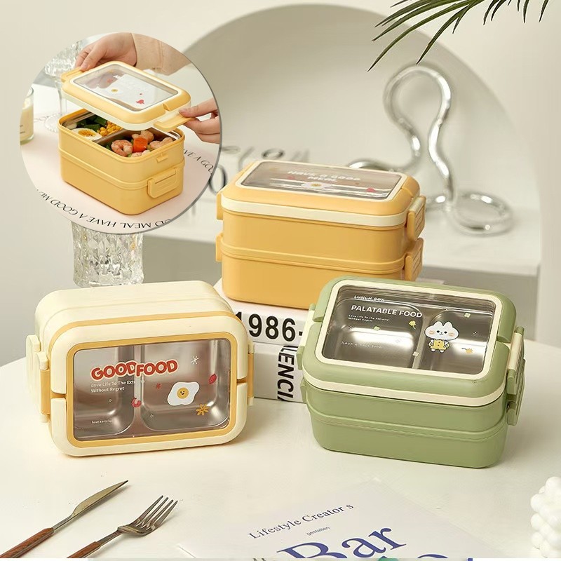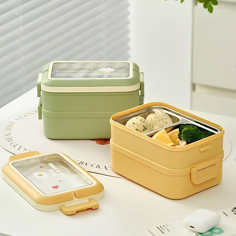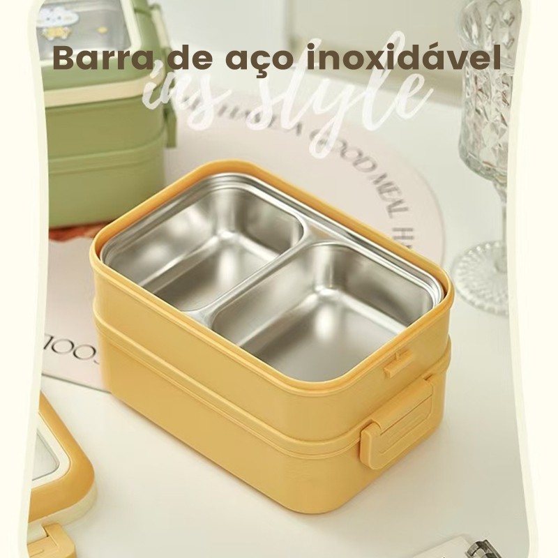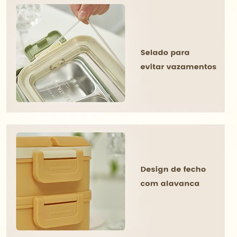 Lancheira Marmita Térmica Inox, 1000ml com 3 Divisórias e Ótima Isolamento