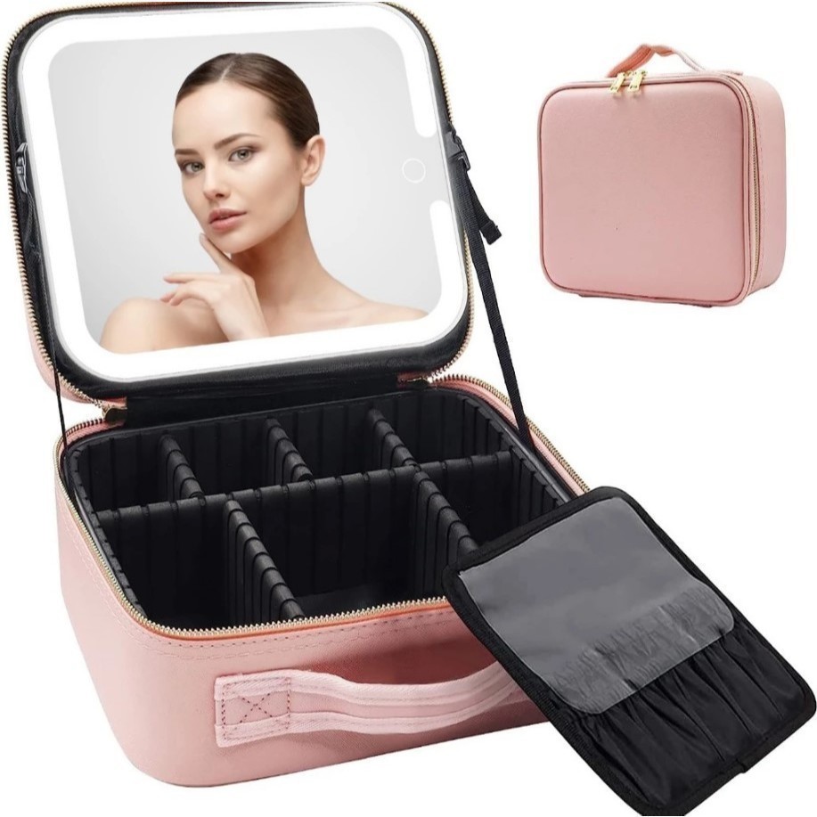 Maleta Maquiagem Com Espelho e Luz Led Usb Com Cabo Makeup Profissional