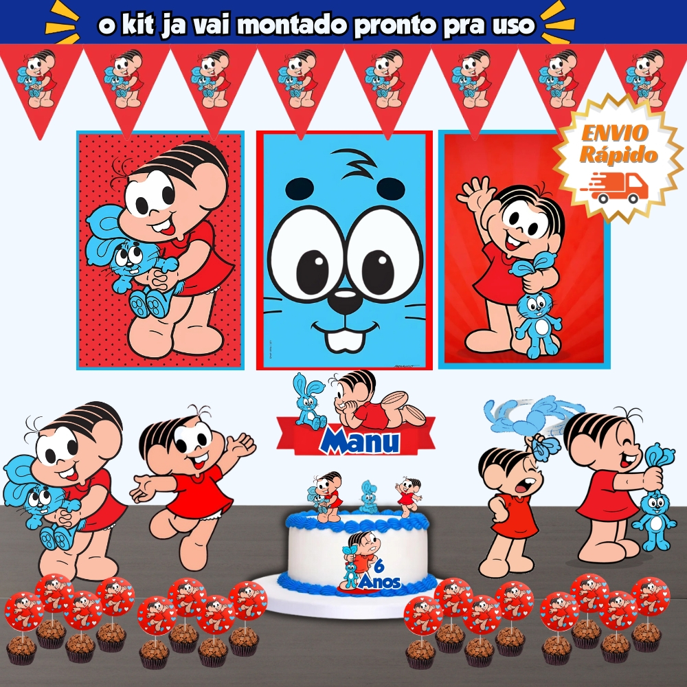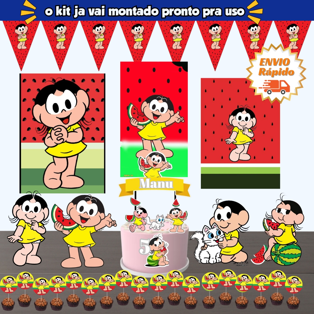 Kit festa Aniversário Magali - Turma da Mônica Magali decoração personalizada com nome no topper