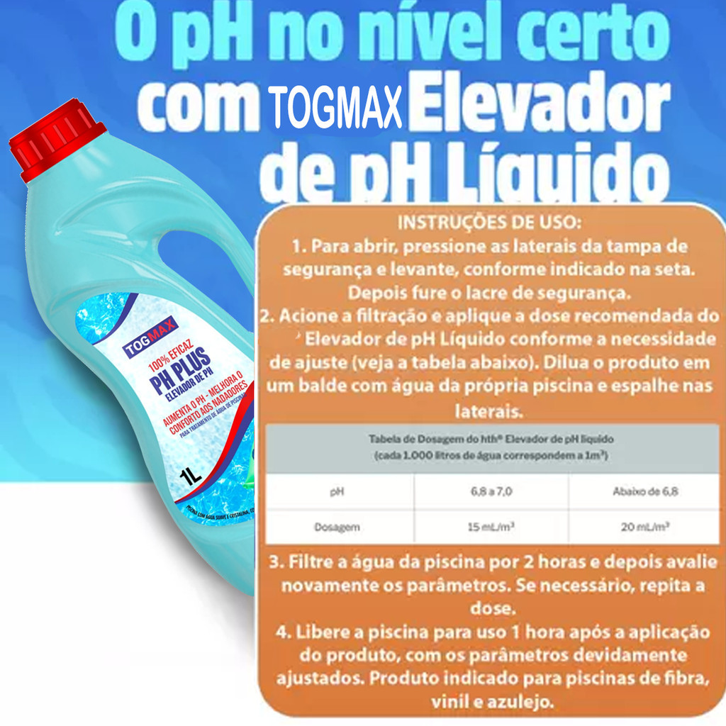 Elevador de Ph Liquido 1Lt Para Piscinas Limpeza Premium TogMax