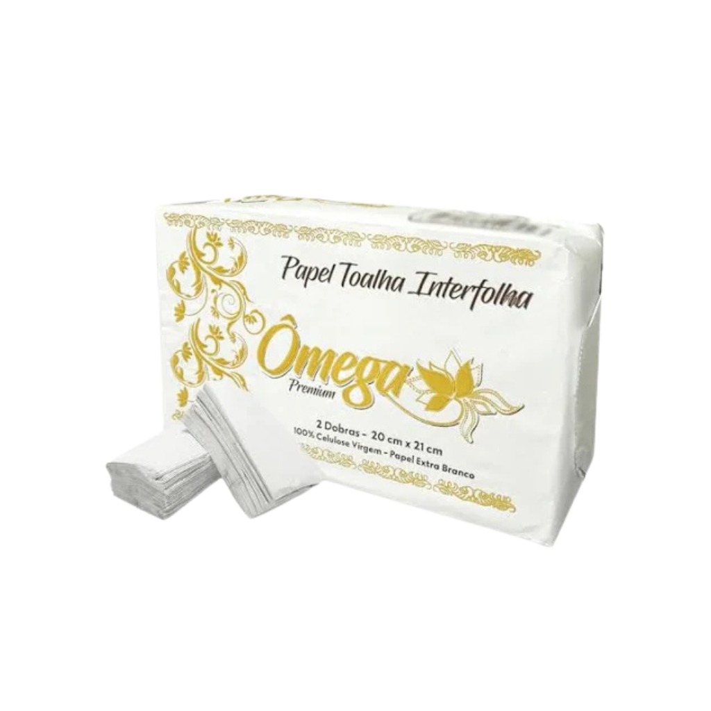 5 Pacotes de Toalha de Papel Omega Premium Grande Duas Dobras Branco Restaurante Bar Hotel Atacado
