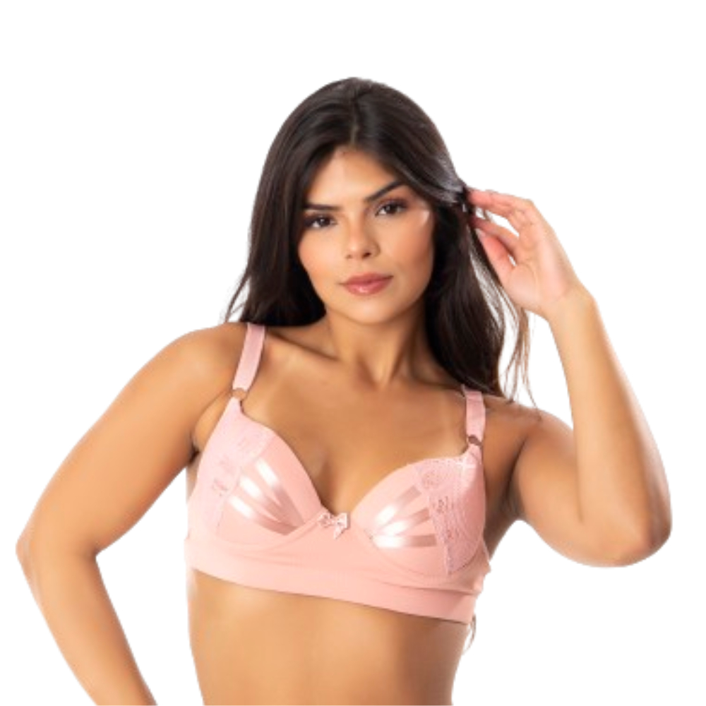 Kit 4 Sutiã Feminino Sustentação Com Alça Reforçada Detalhe Fita Bojo Íntimo Reforçado Microfibra