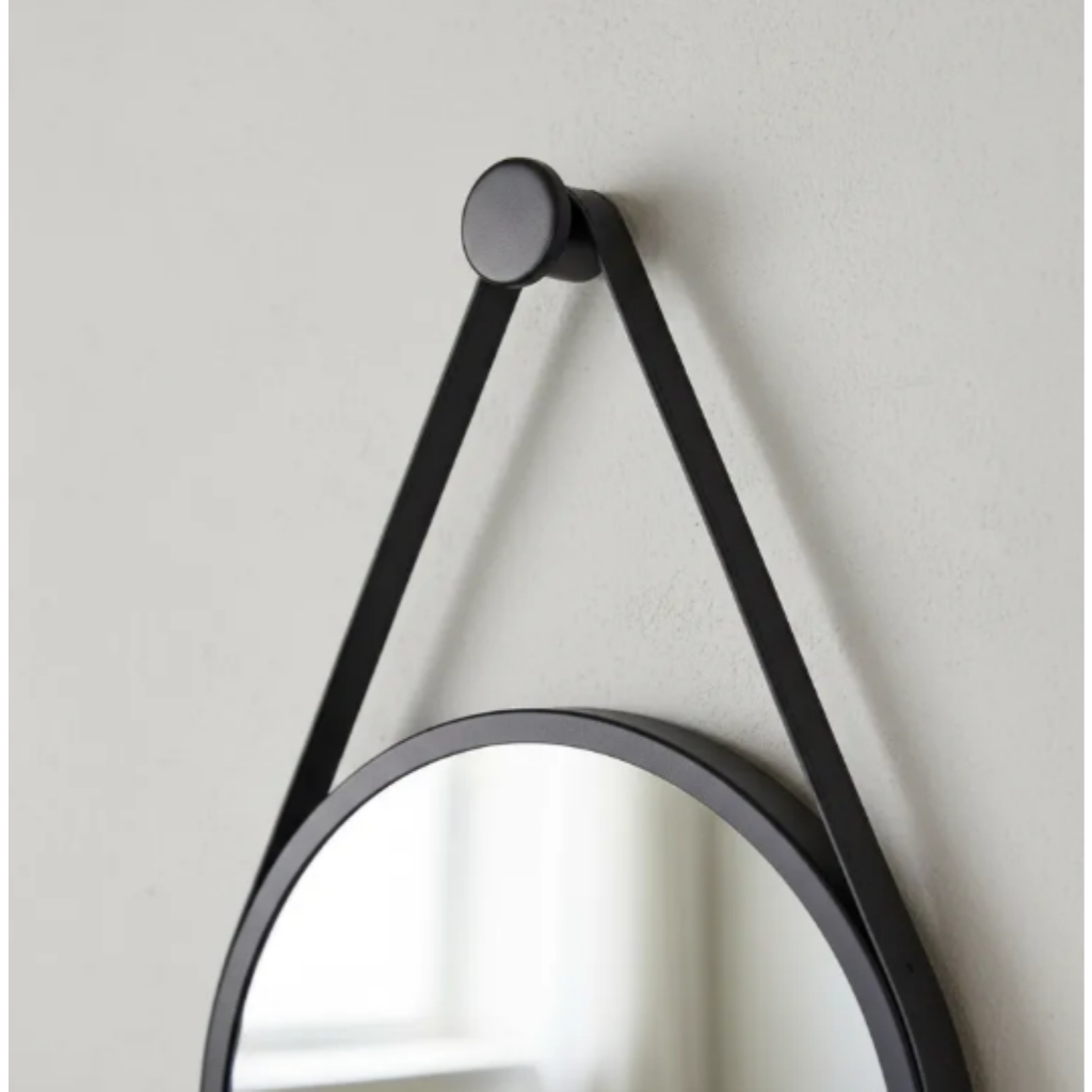 Espelho Redondo Adnet Decorativo Suspenso com Alça 60cm + Suporte Preto com Alça Preta
