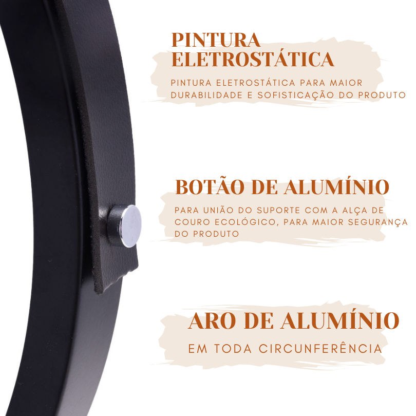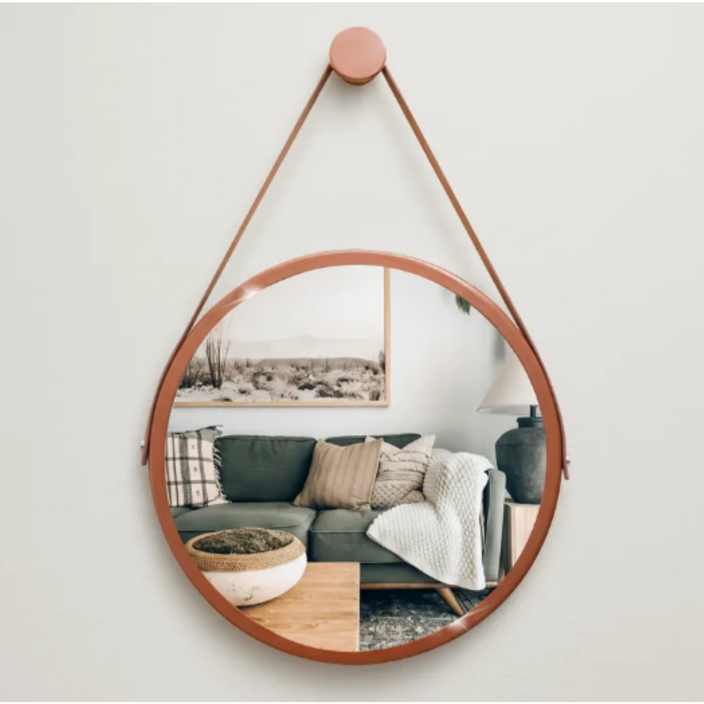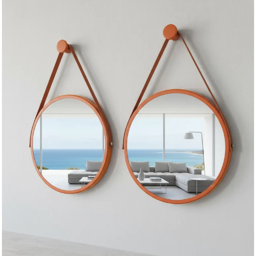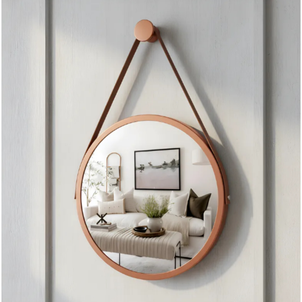 Kit 2 Espelhos Redondo Adnet Decorativo Suspenso com Alça 40cm + Suporte Cobre com Alça Caramelo