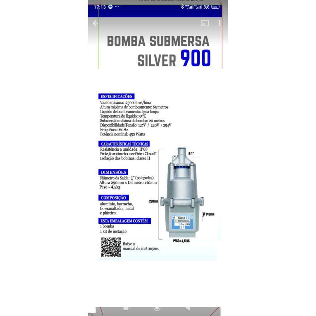 Bomba Sapo Silver 900 Submersa Poço D'agua - 1 Polegada