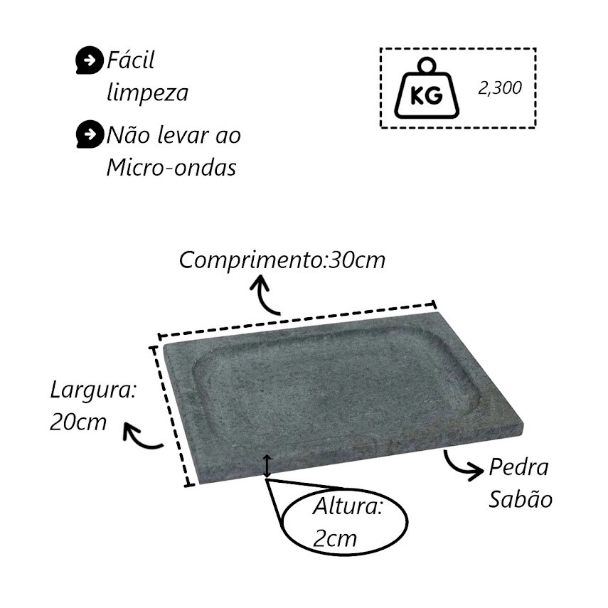 Kit 3 Prato Retangular Bandeja de Servir Pedra Sabão 20x30cm