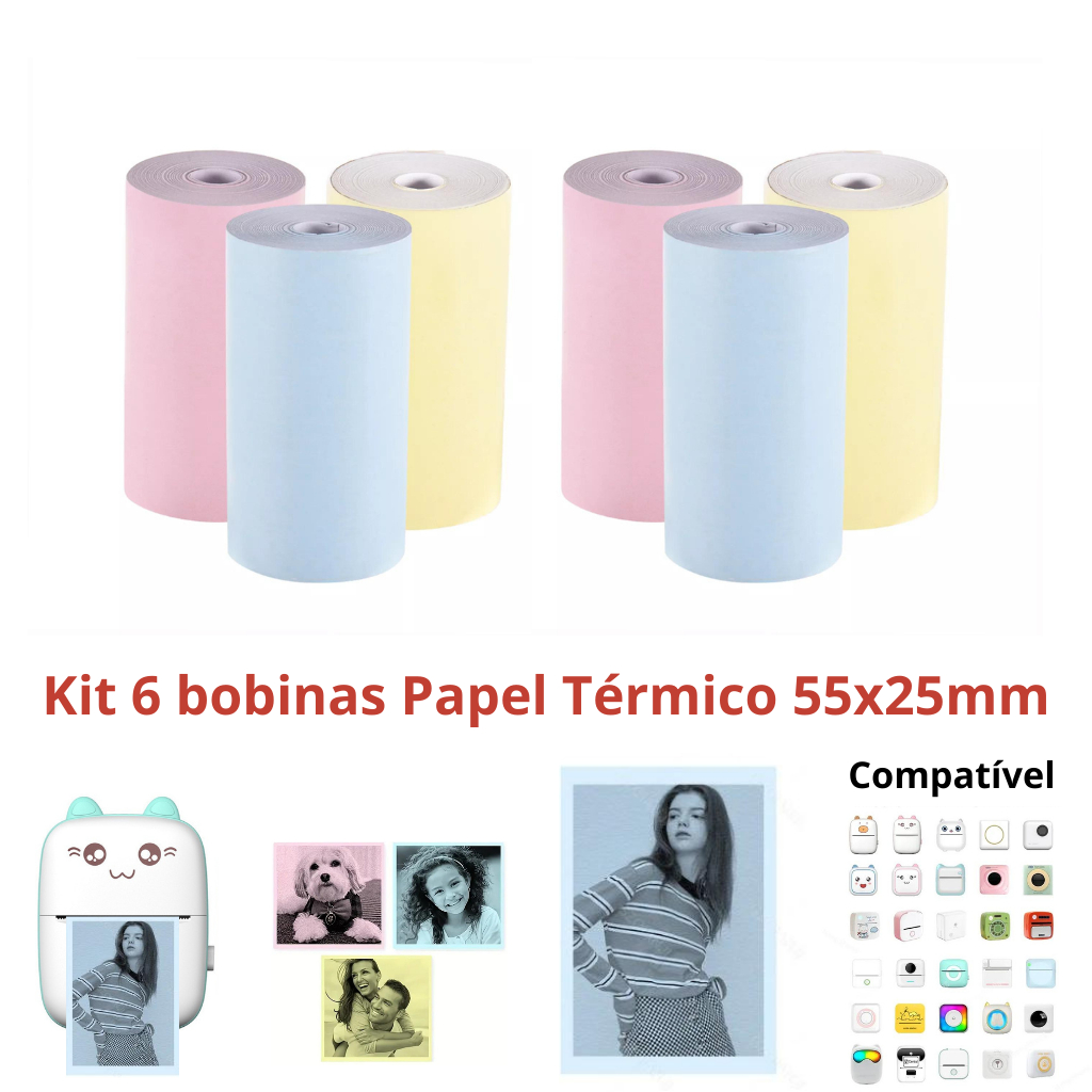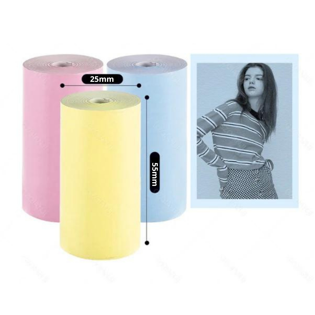 Bobina Rolo De Papel 55*25mm Colorido Mini Impressora Portátil a Prova De Água Impressão De Fotos Agenda Notas Jornal Fotográfico Recibo