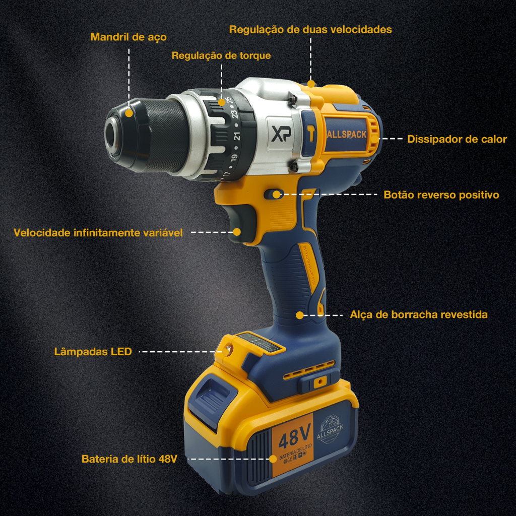 Parafusadeira Furadeira Alta Performance Recarregavel Broca 48v Completa Profissional