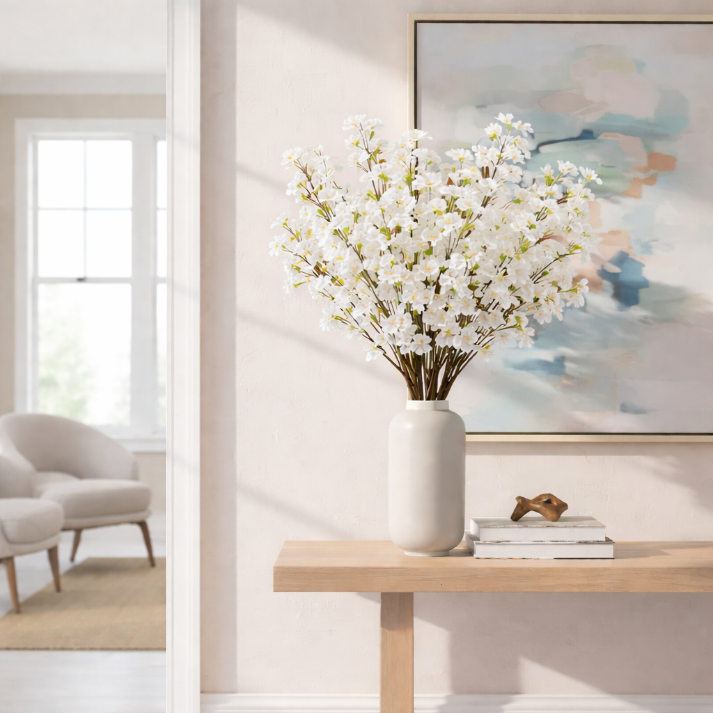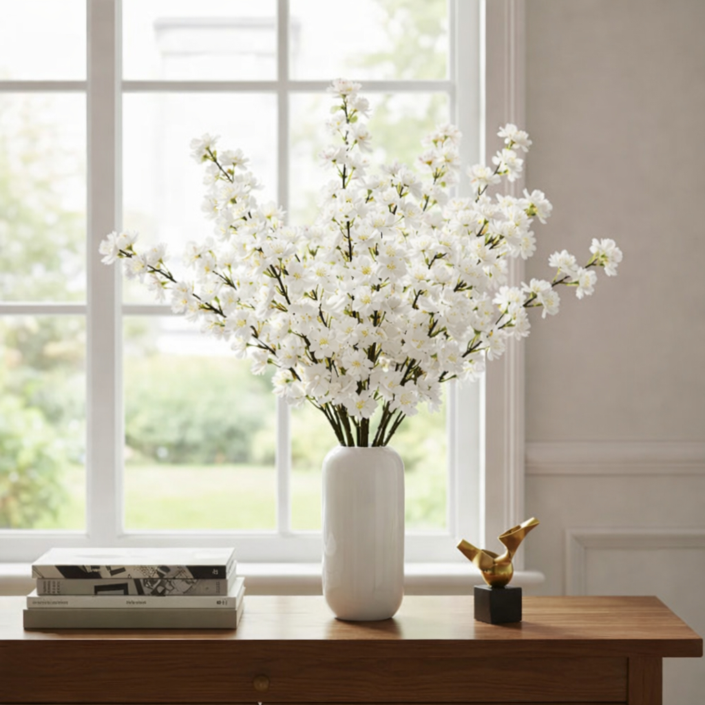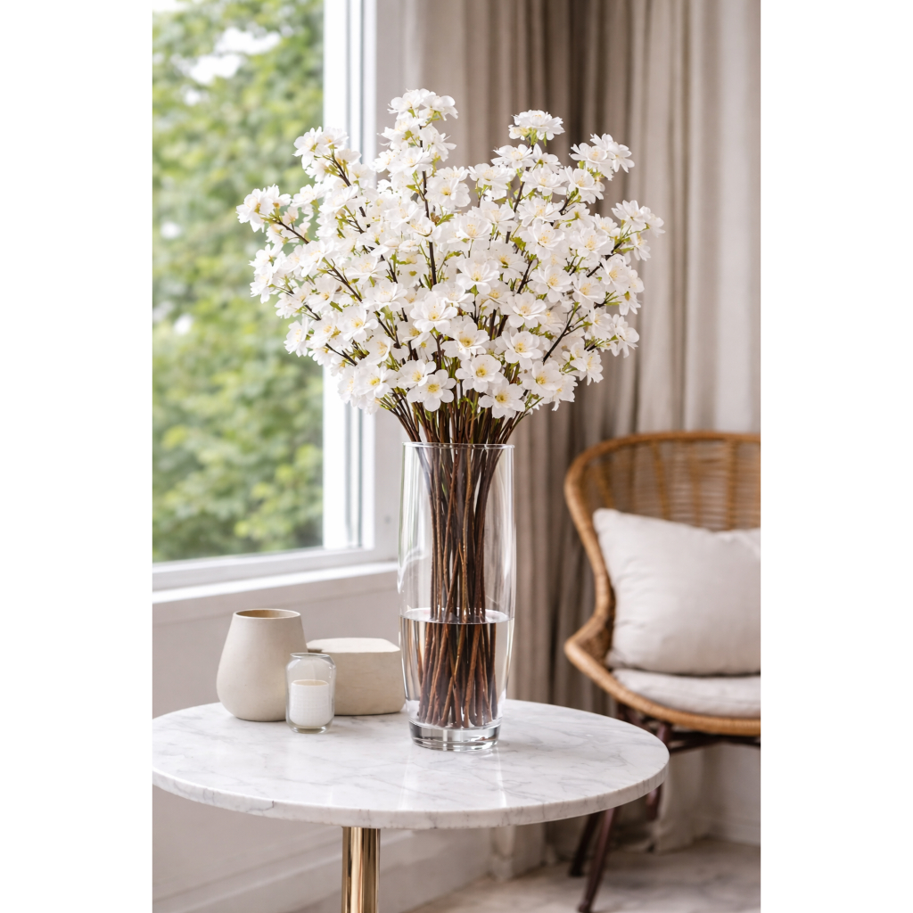 20 Galhos Flor Branca De Cerejeira Pessegueiro Decoração