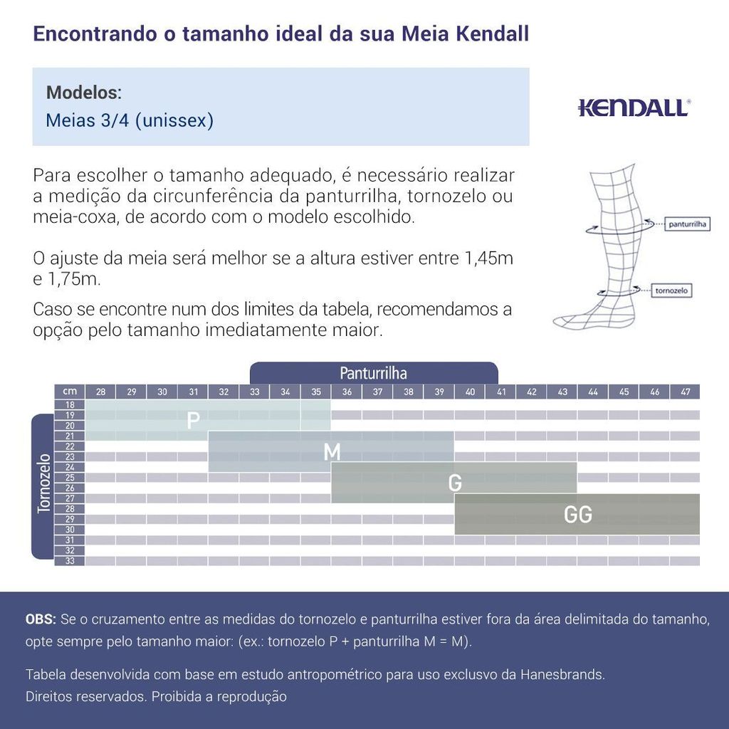 Meia Kendall 3/4 Alta Compressão Care com ponteira 3113