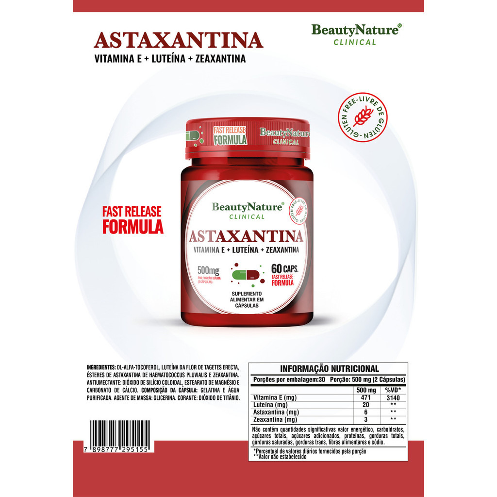 Kit 2x Astaxantina Luteina Zea Vit E 500mg 60 Caps Bt Nature Sem Sabor