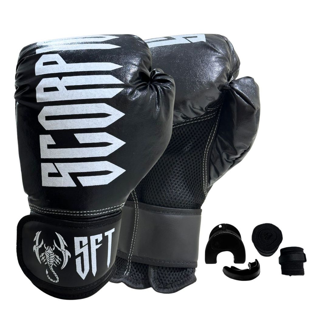 Luvas Muay Thai Boxe Kickboxing Sparring Scorpions + Bandagem + Bucal+Sacola
