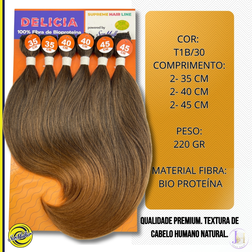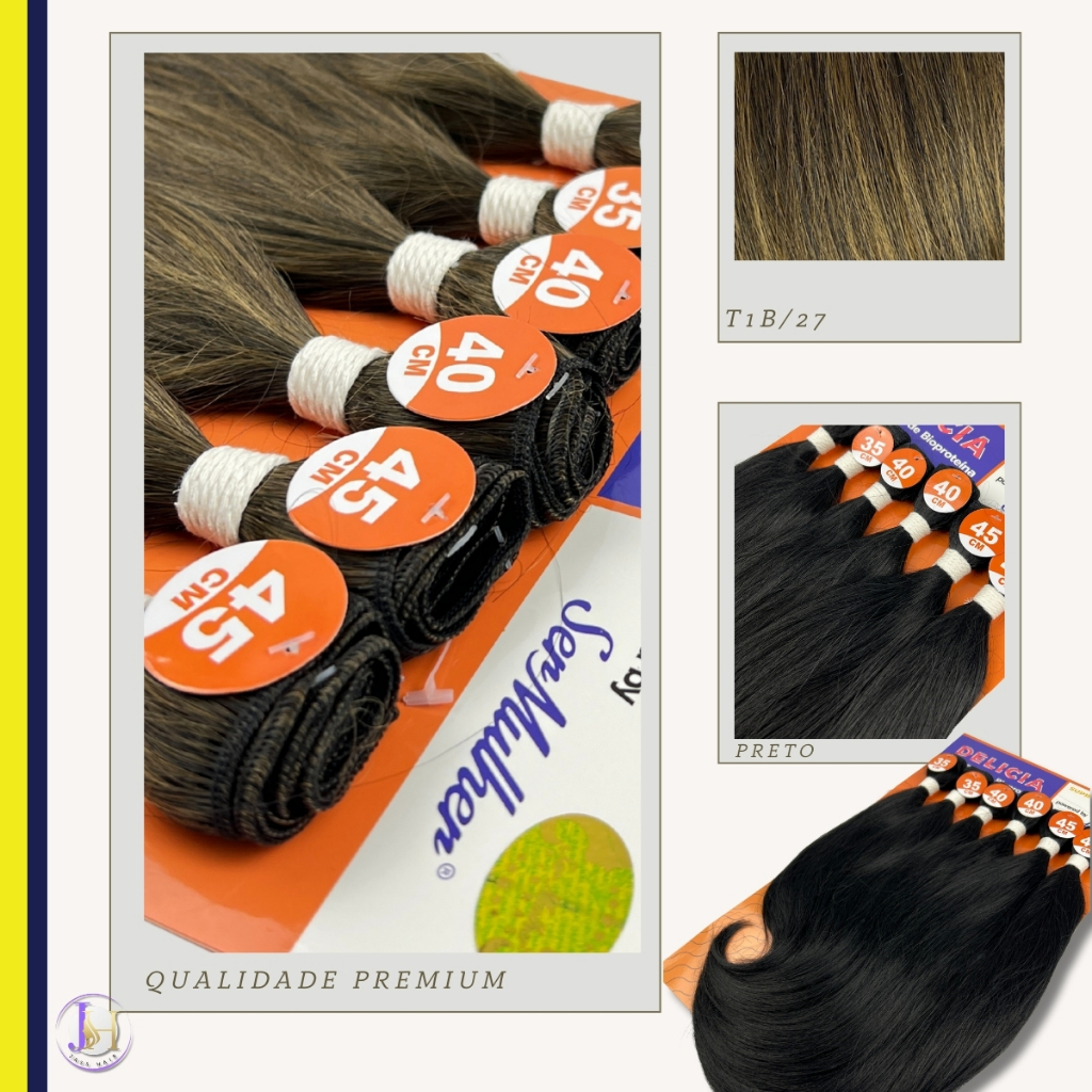 Aplique Cabelo Tela Liso Bioproteína Delicia Ser Mulher 45cm