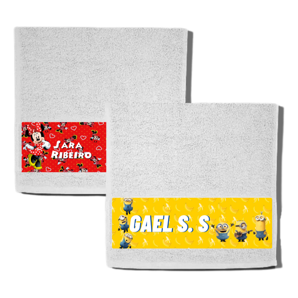 Kit 2 Toalhinhas Infantil Volta as Aulas Personalizada Com Nome Personagem Lavabinho Mão Boca Rosto
