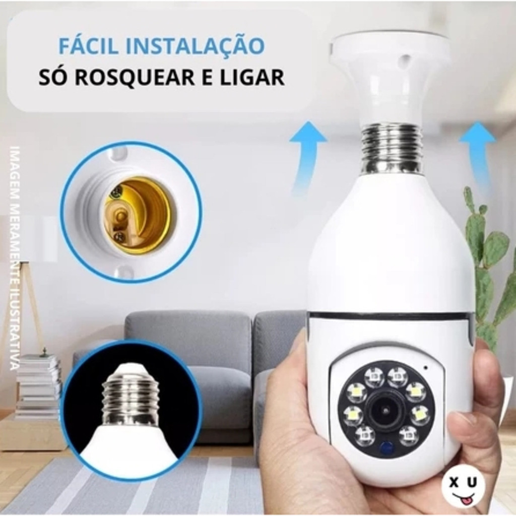 Câmera segurança wifi ip sem fio 360 com encaixe lampada bocal ptz full HD visão noturna - bivolt SHUSHU SHOP