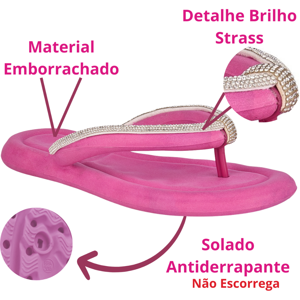 Chinelo Feminino Adulto Juvenil Brilho Strass Confortável Antiderrapante Moda Verão Promoção Leve