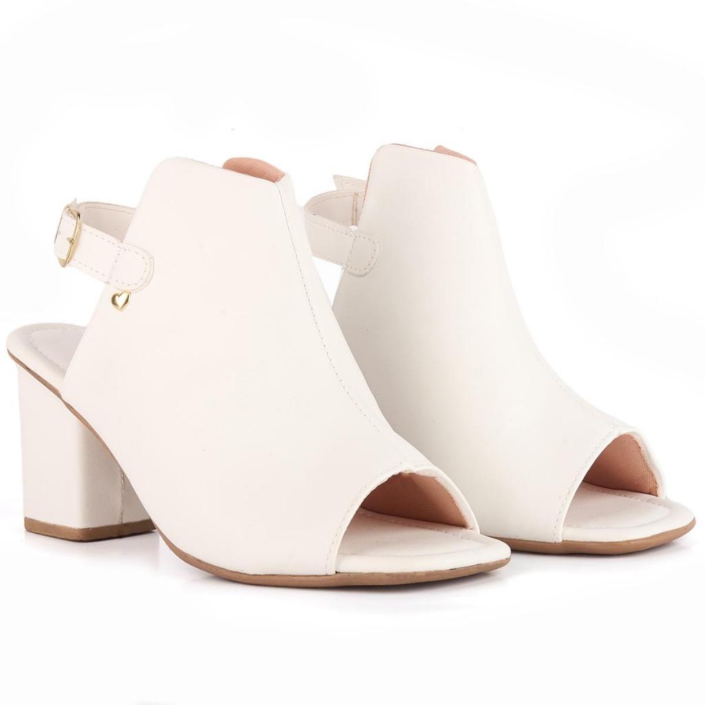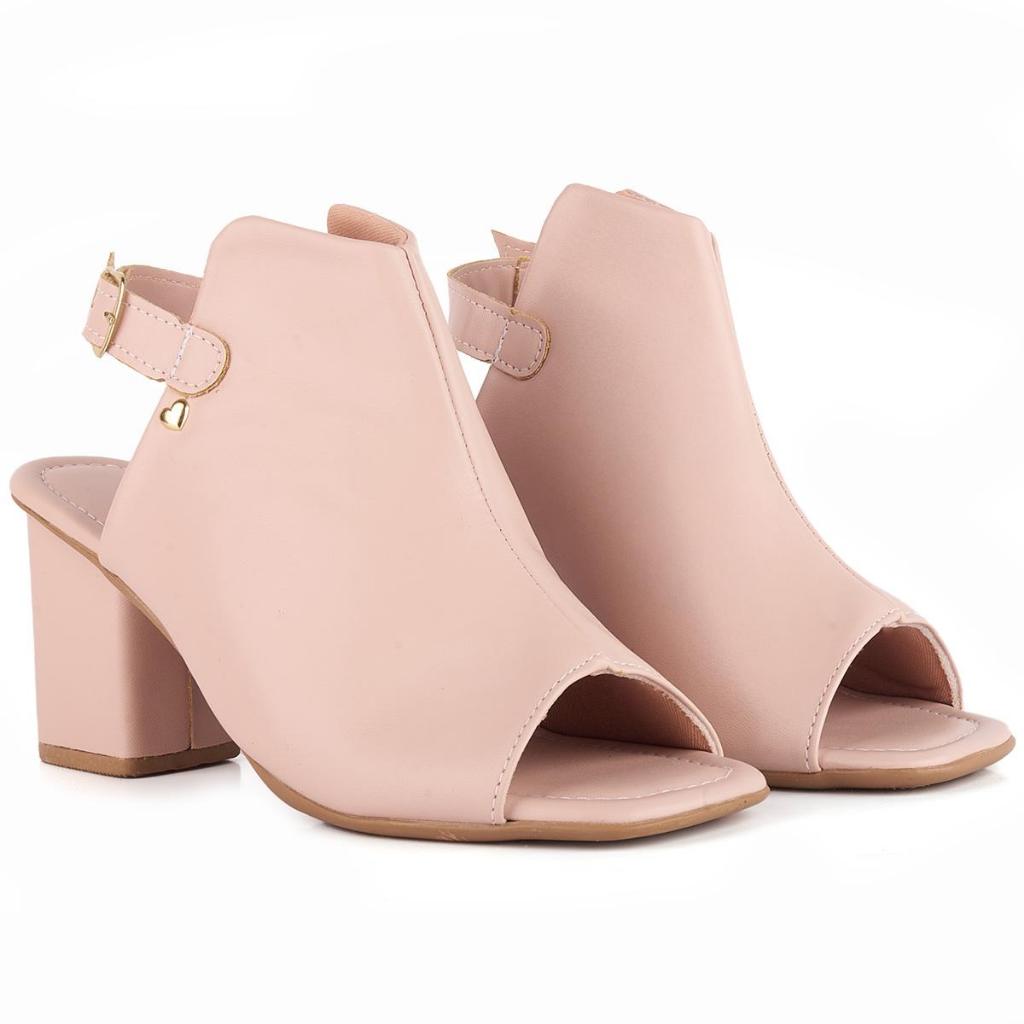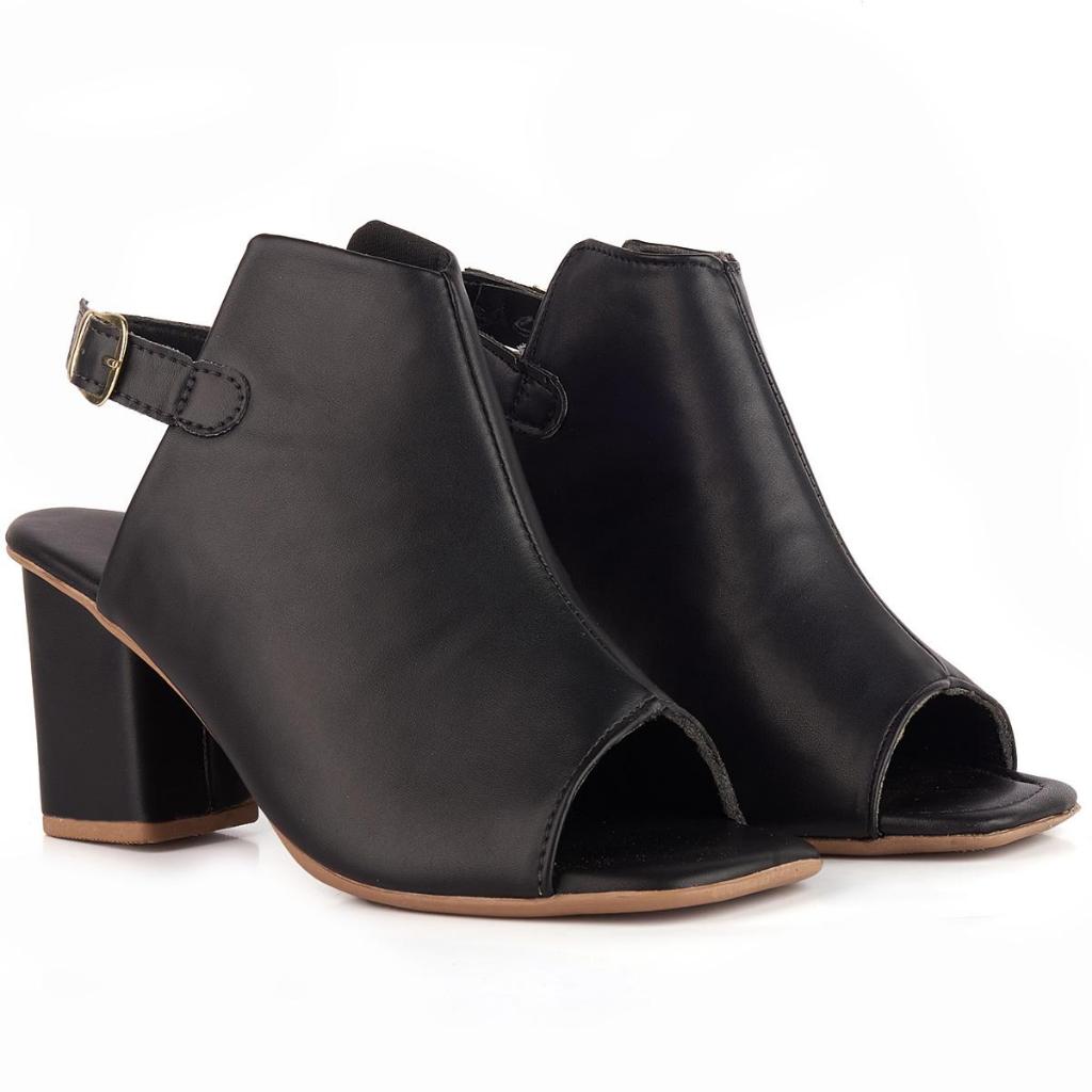 Peep Toe Feminino Sandalia Salto Bloco Aberto Atrás Fivela Elegante Conforto Preto Casual Modelo Fernanda