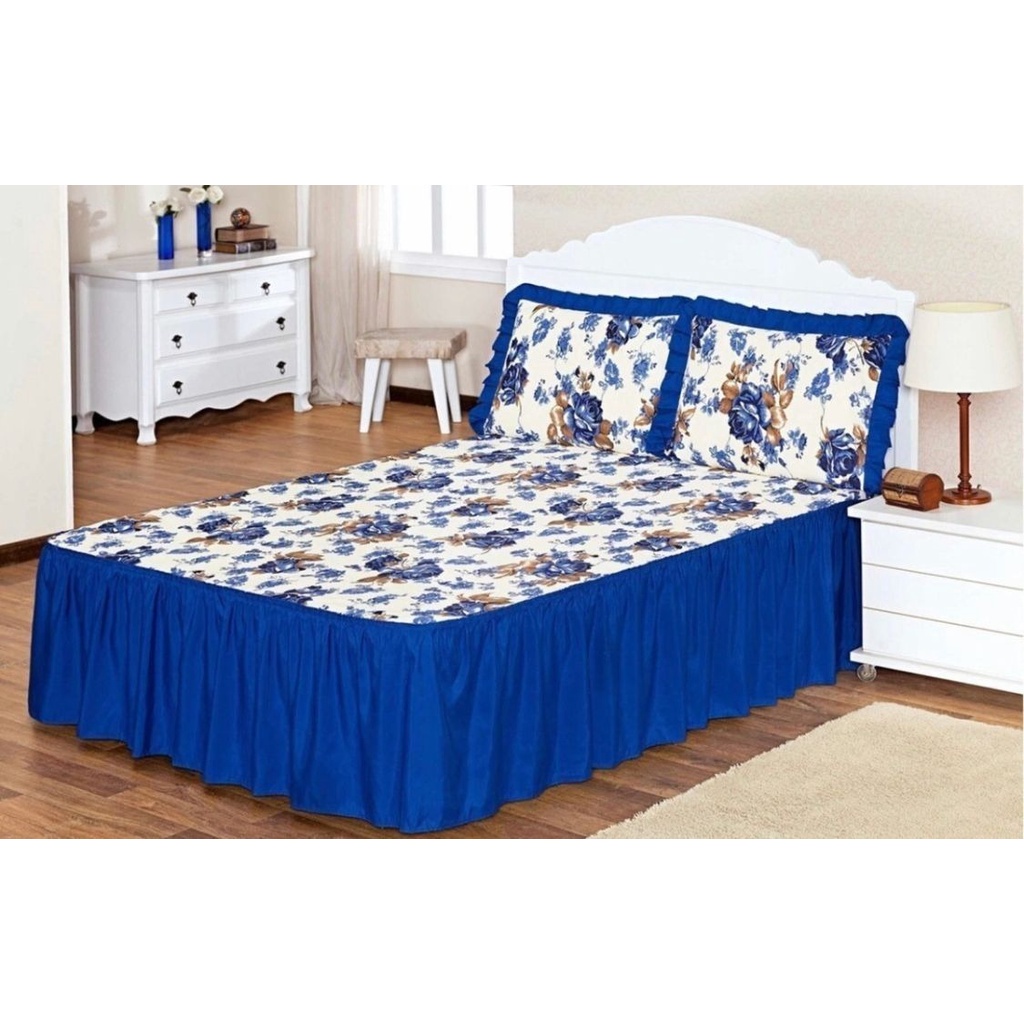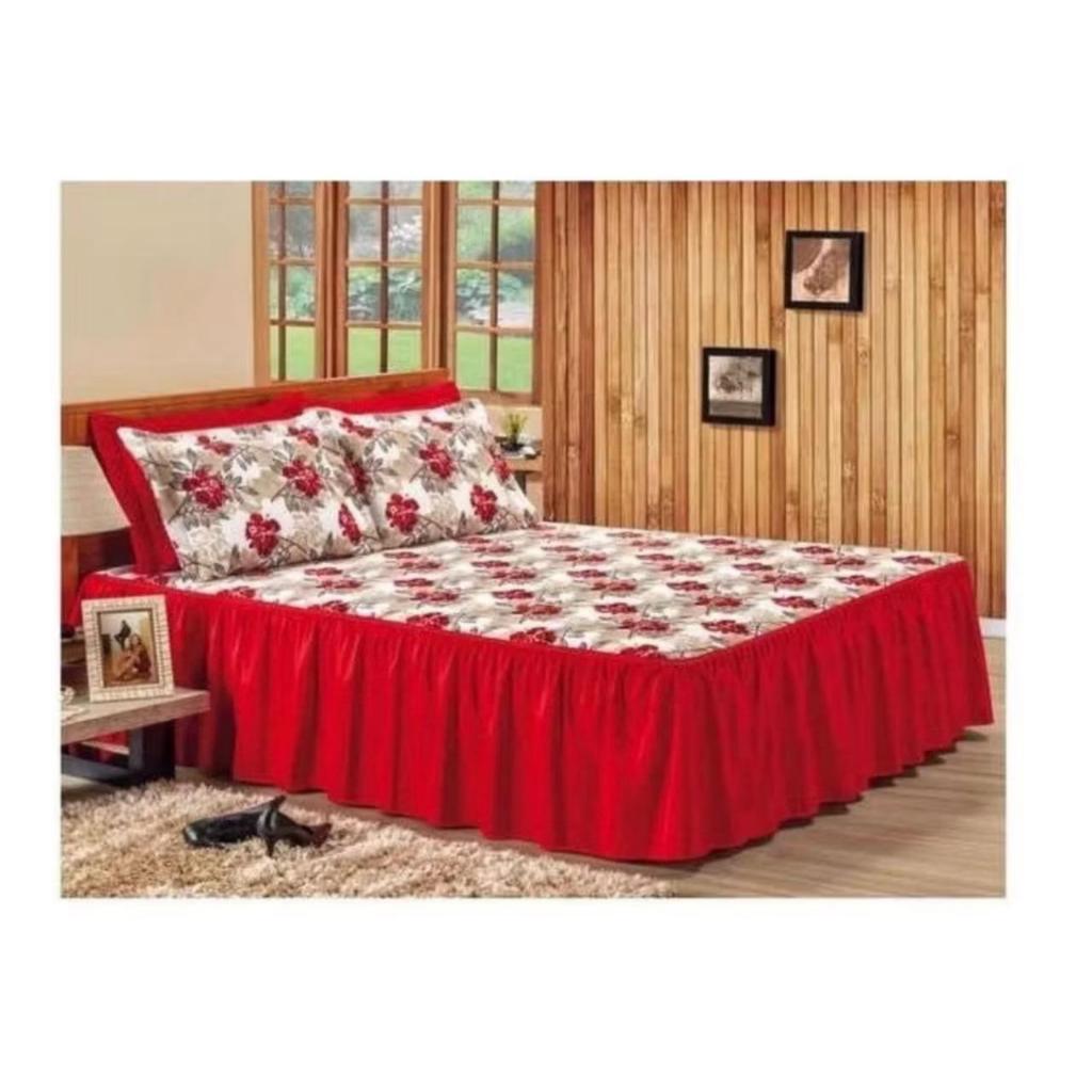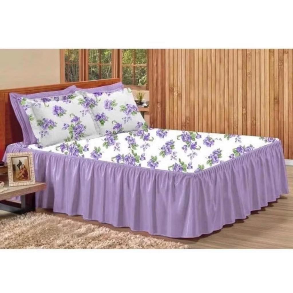 Kit 3pçs Cobre Leito Colcha/coxa Casal E Queen Babado Floral