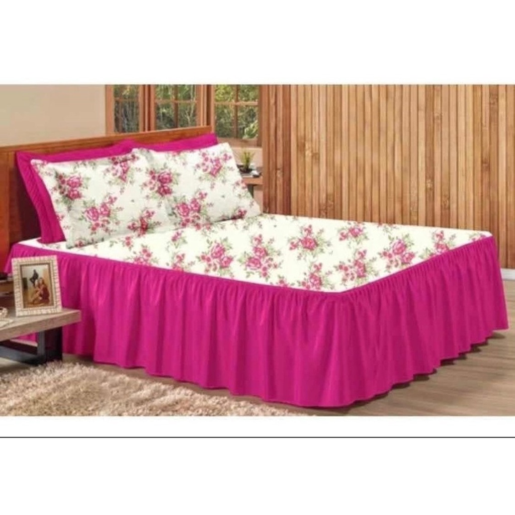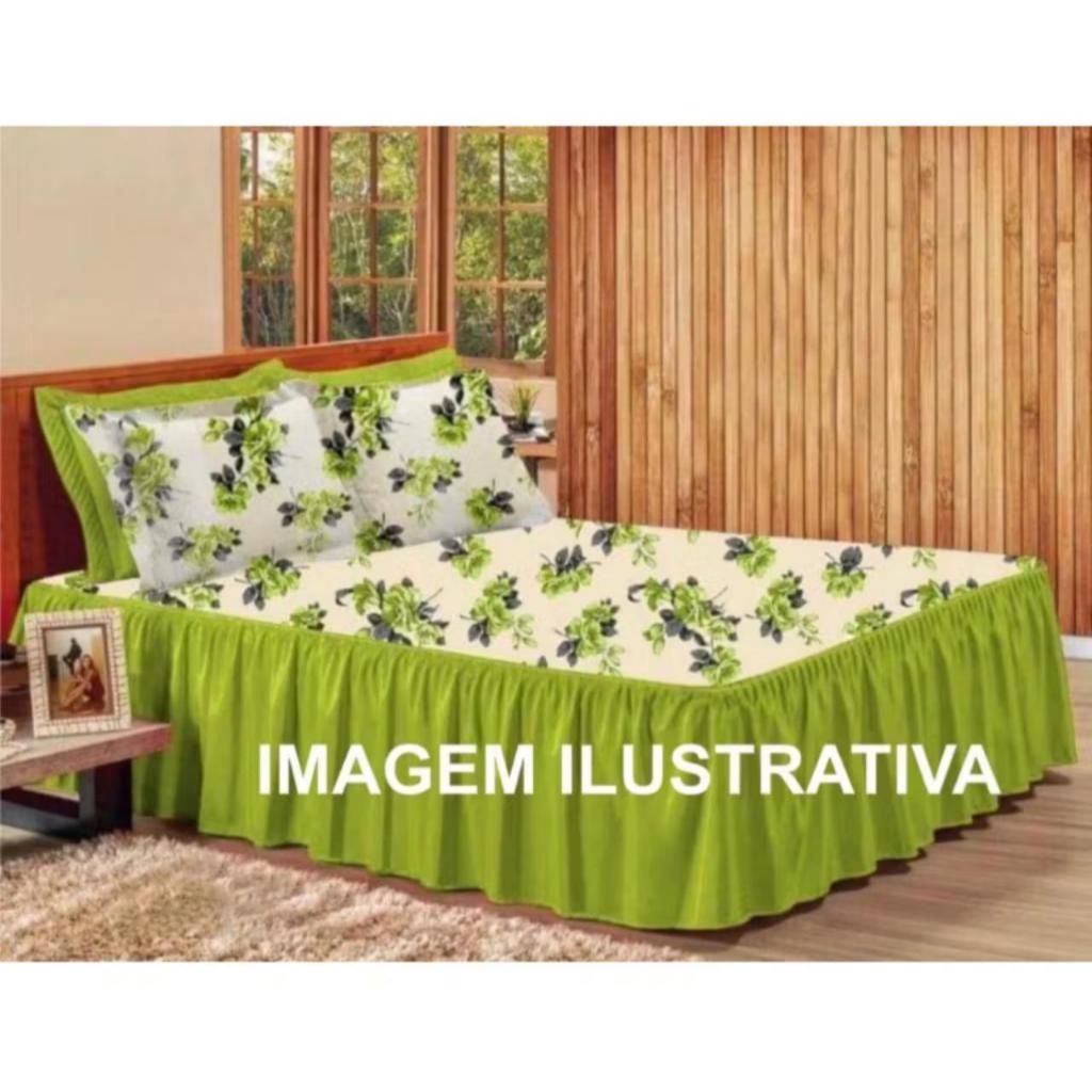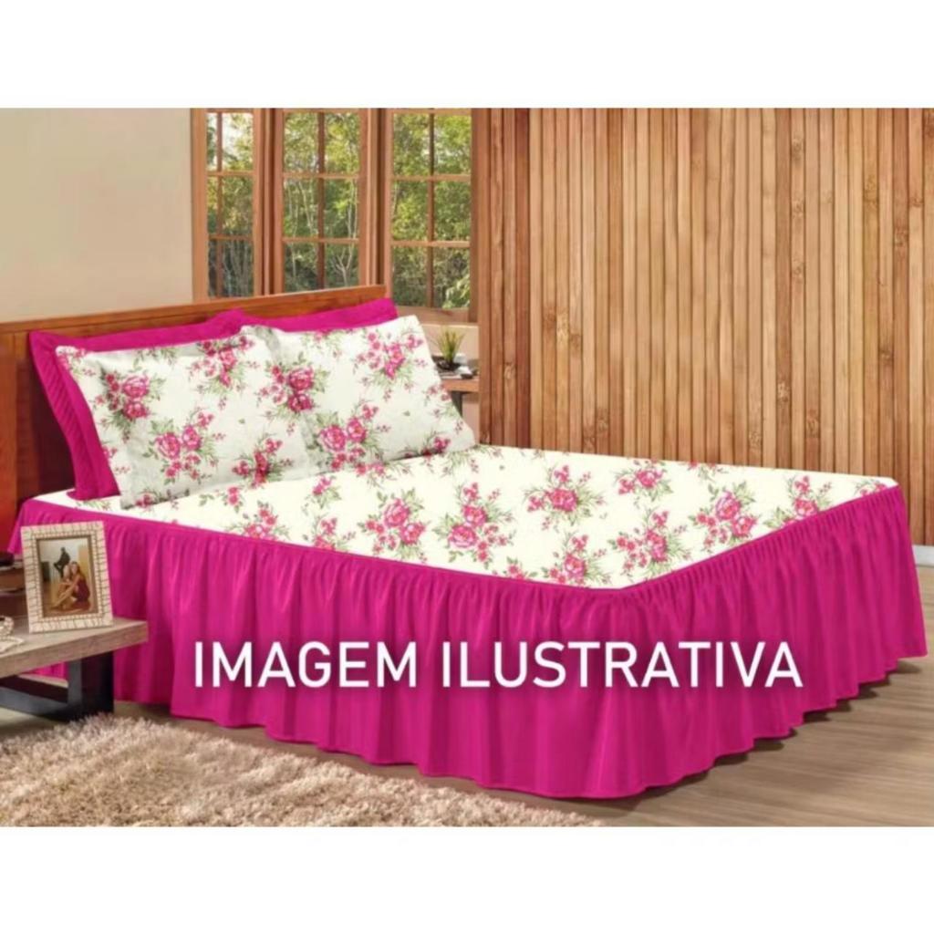 Kit 3pçs Cobre Leito Colcha/coxa Casal E Queen Babado Floral