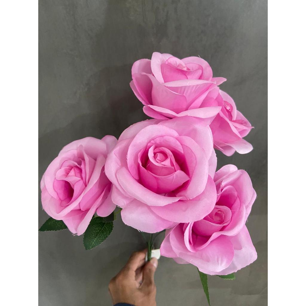 Buquê De Rosas GRANDE Com 5 Flores Branca Artificial Decoração