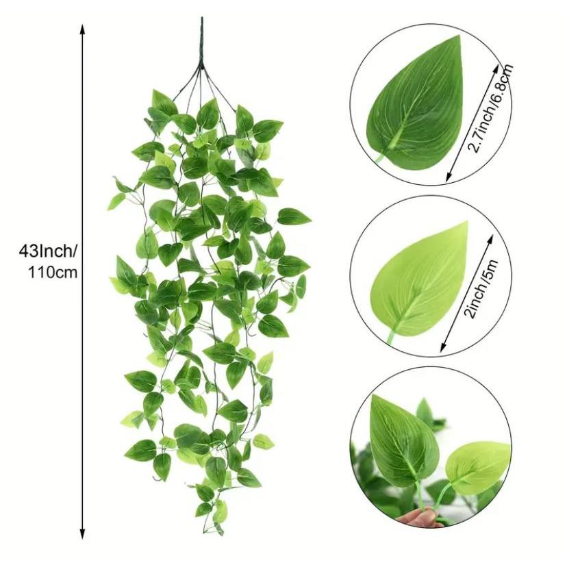 1 Pendente De Folhagem Jiboia Silicone Caída 110cm Artificial Jardim Vertical