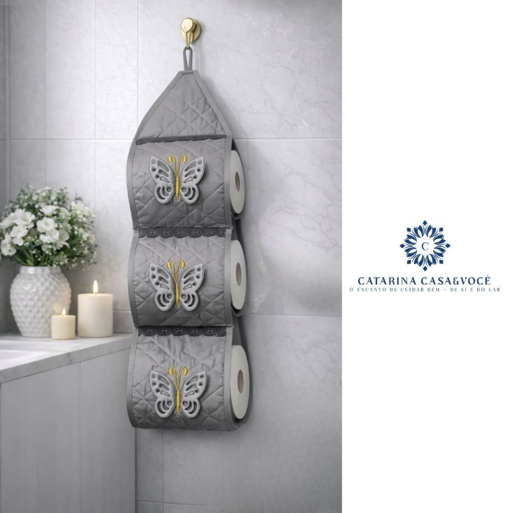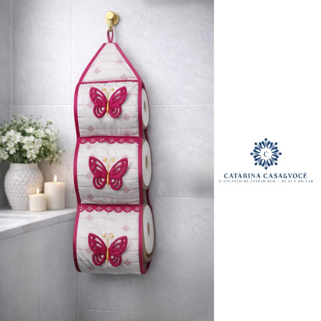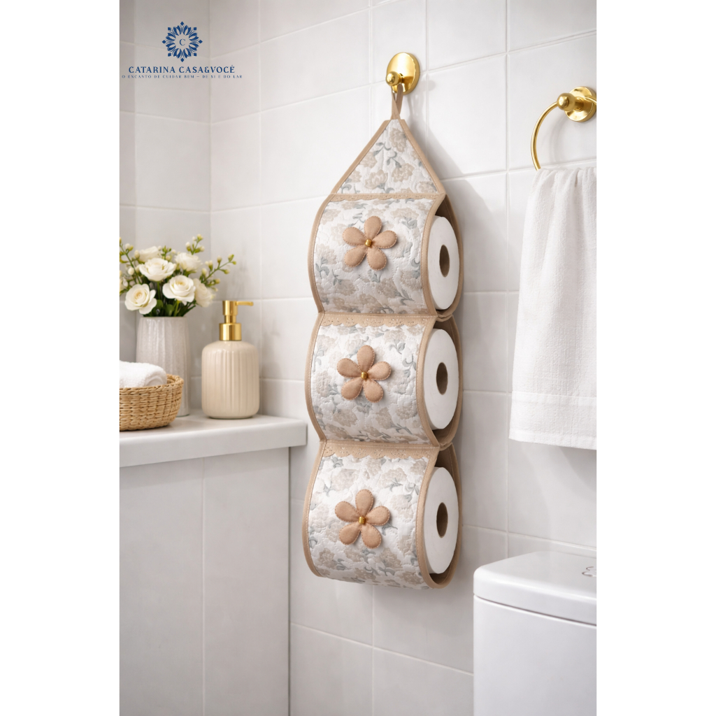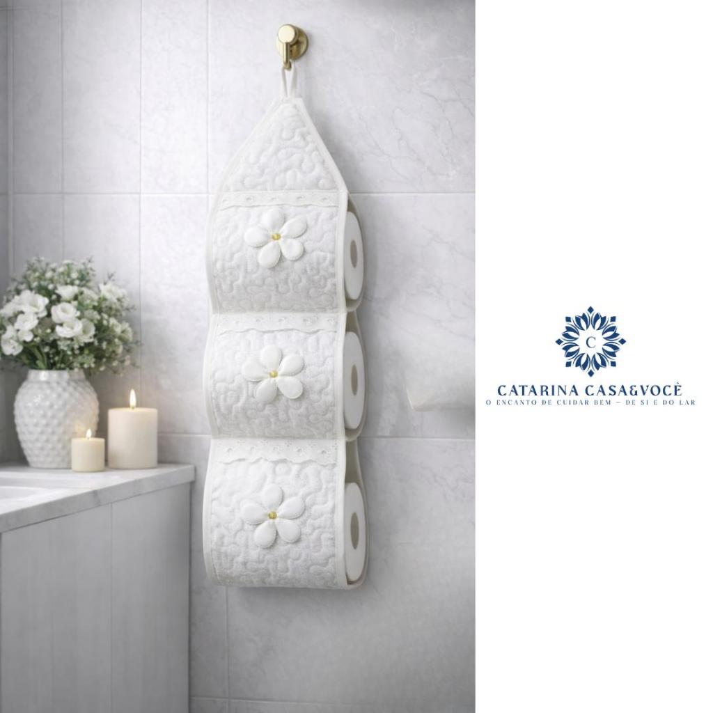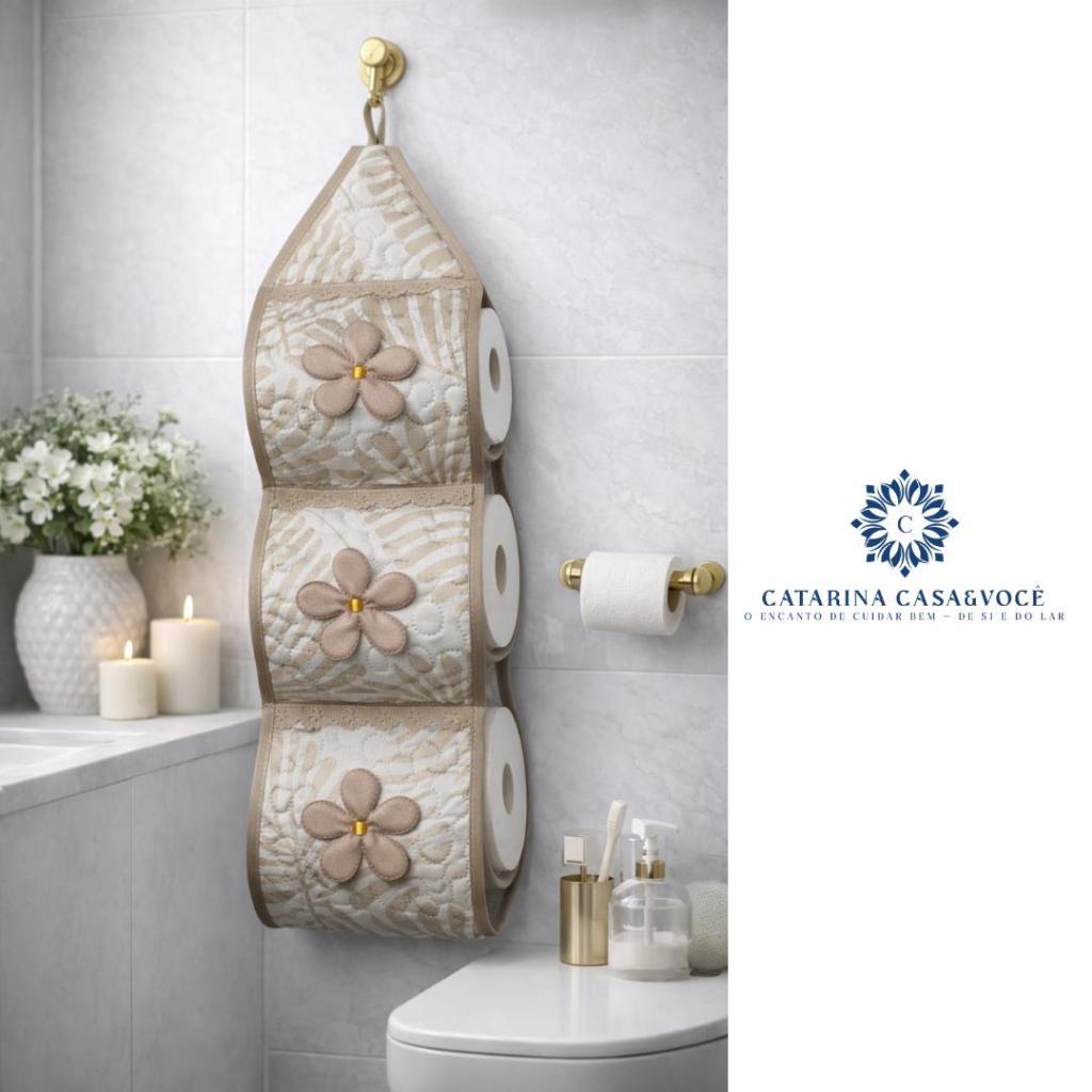 Porta De Papel Higiênico Tecido Matelado Avulso Para 3 Rolos C/ Aplicação e Aviamento