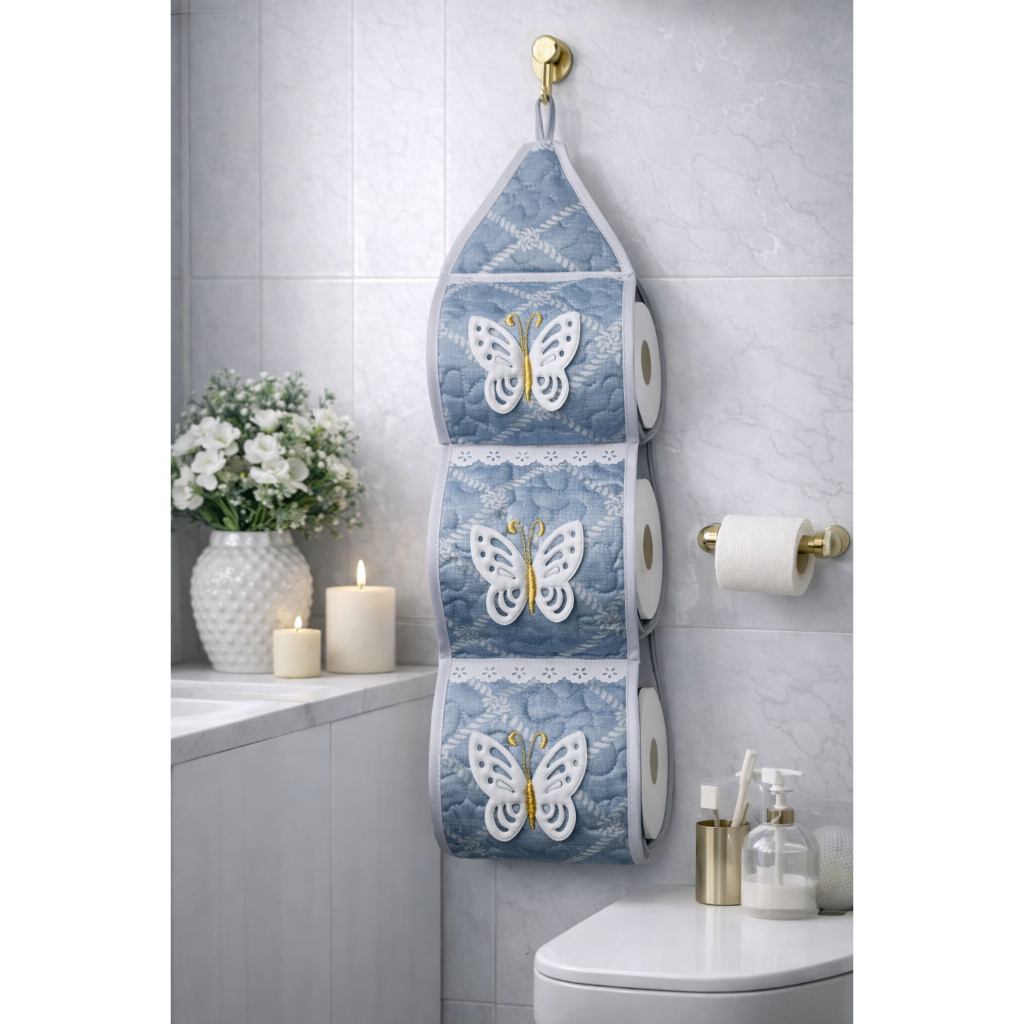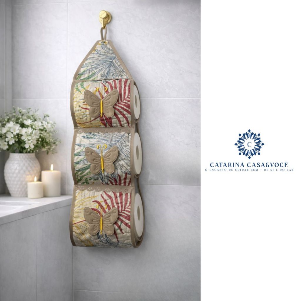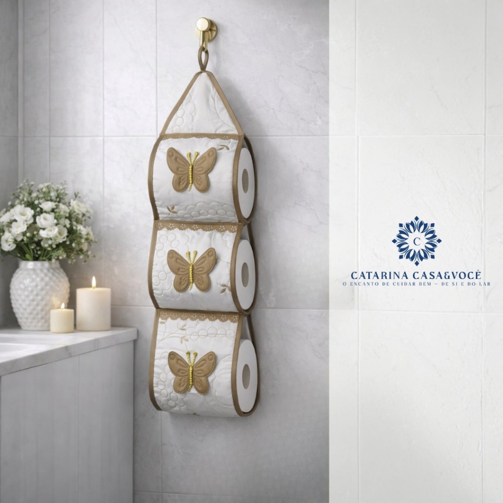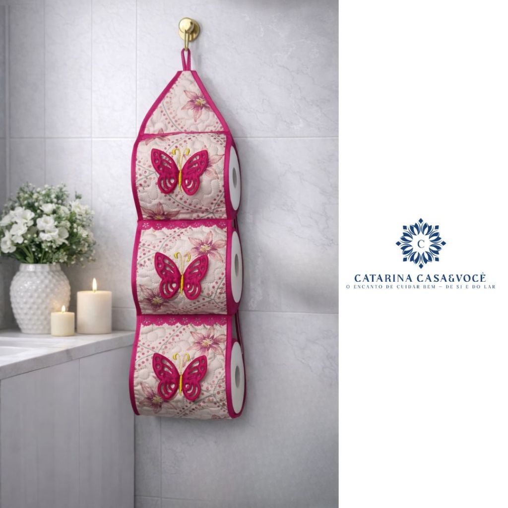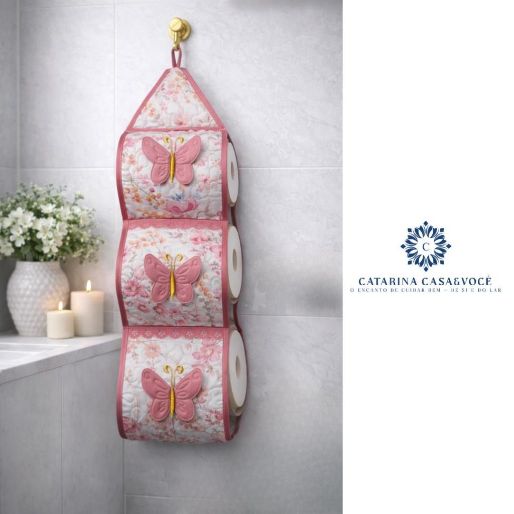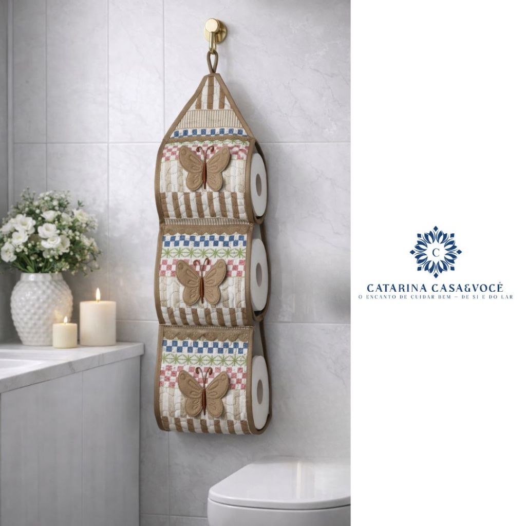Porta De Papel Higiênico Tecido Matelado Avulso Para 3 Rolos C/ Aplicação e Aviamento