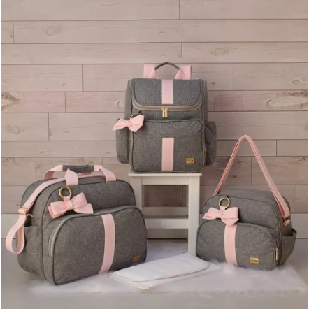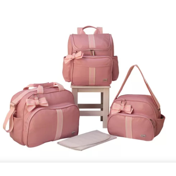 KIt Bolsas Maternidade Mochila Térmica Unissex Cinza/caramelo