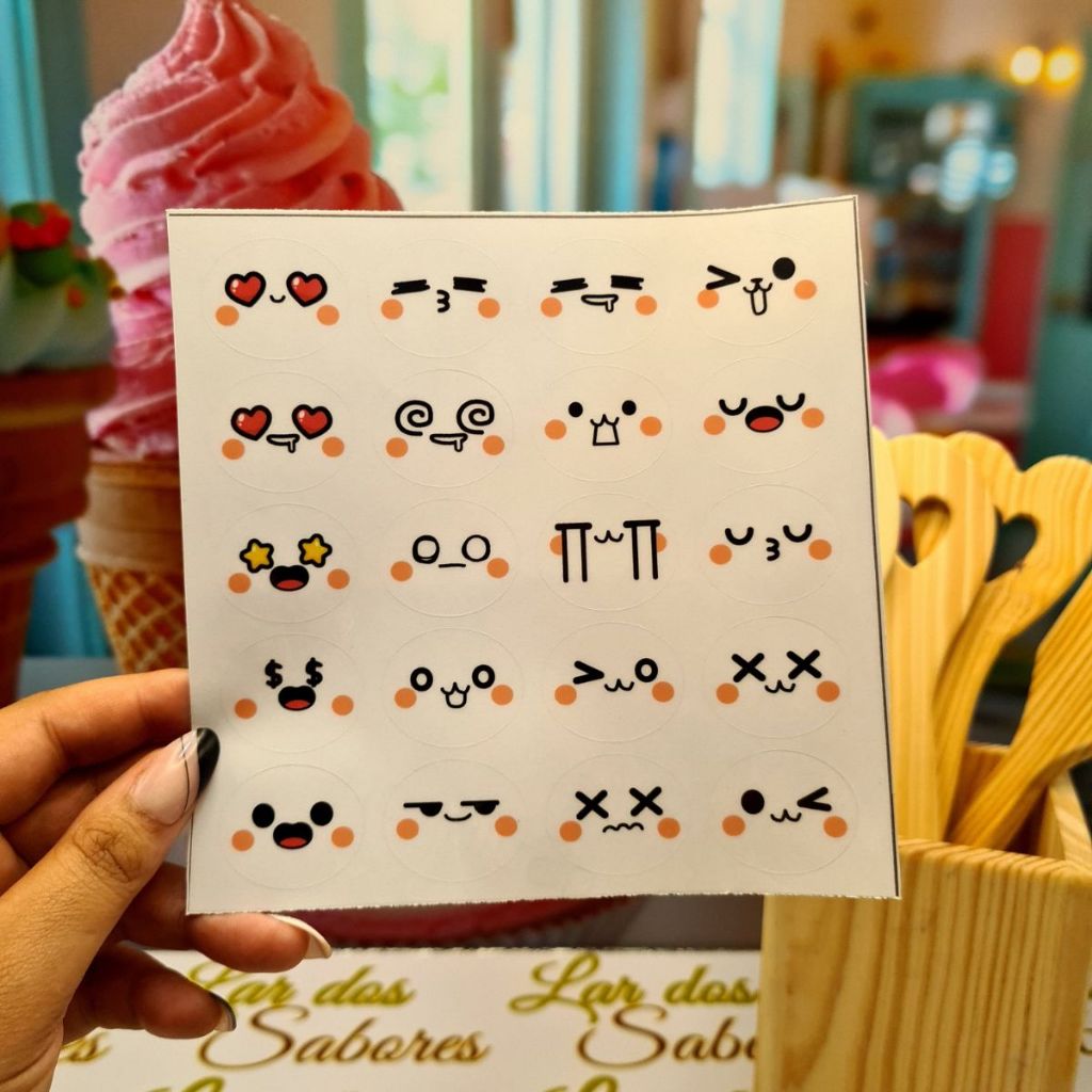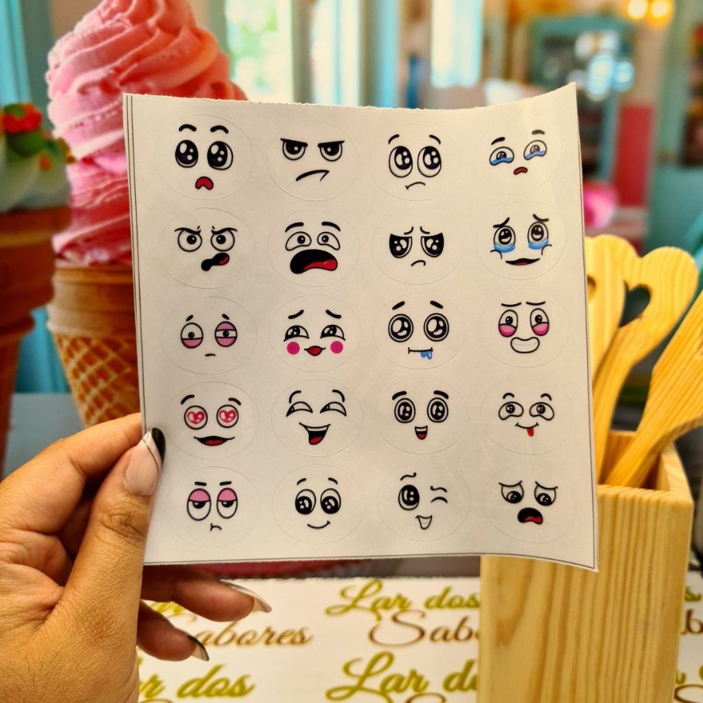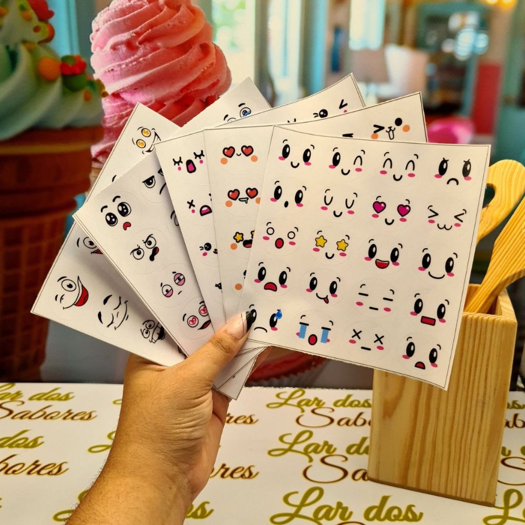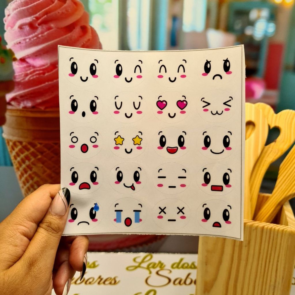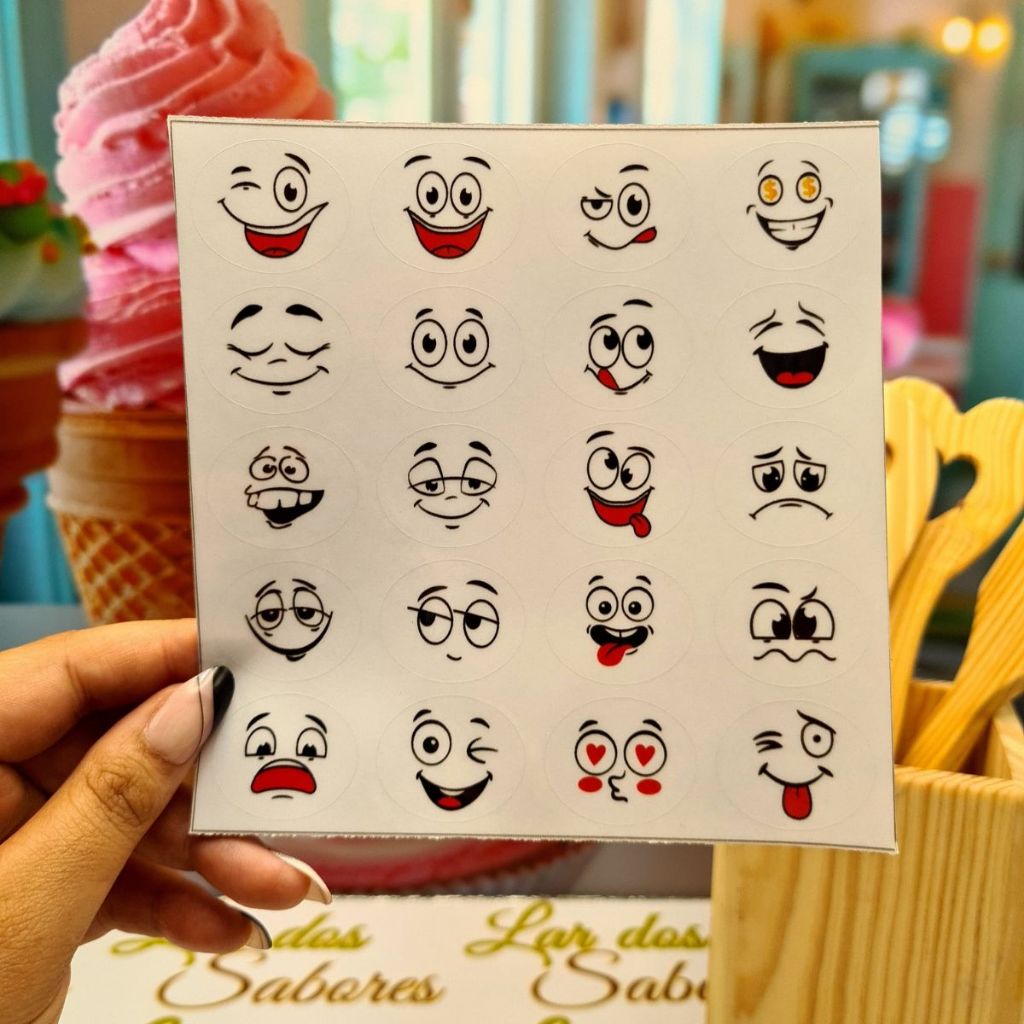 Adesivos Carinhas Divertidas para Doces Gelinhos Geladinhos Dindin Sacolé Pudim À Prova d’Água 3x2,5