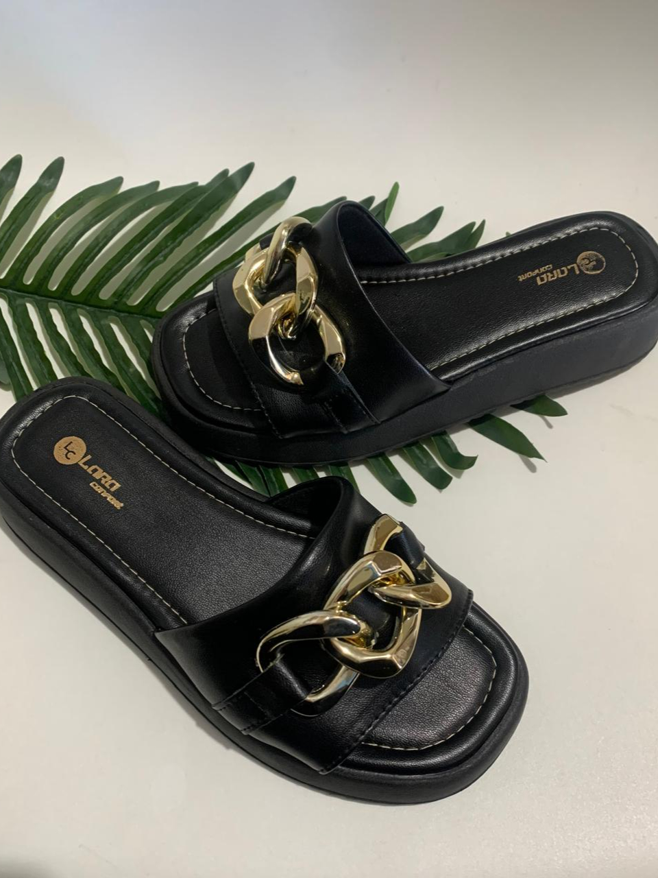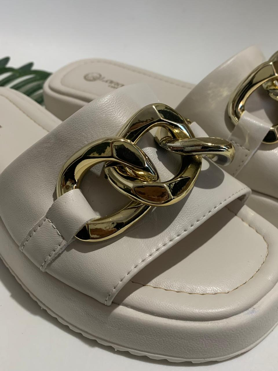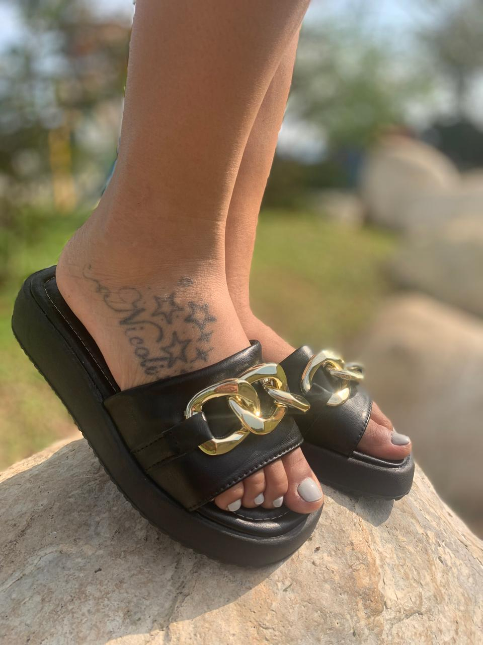 Sandália Papete Flatform Plataforma com Corrente Sola Alta Salto Grosso Tamanco Feminina