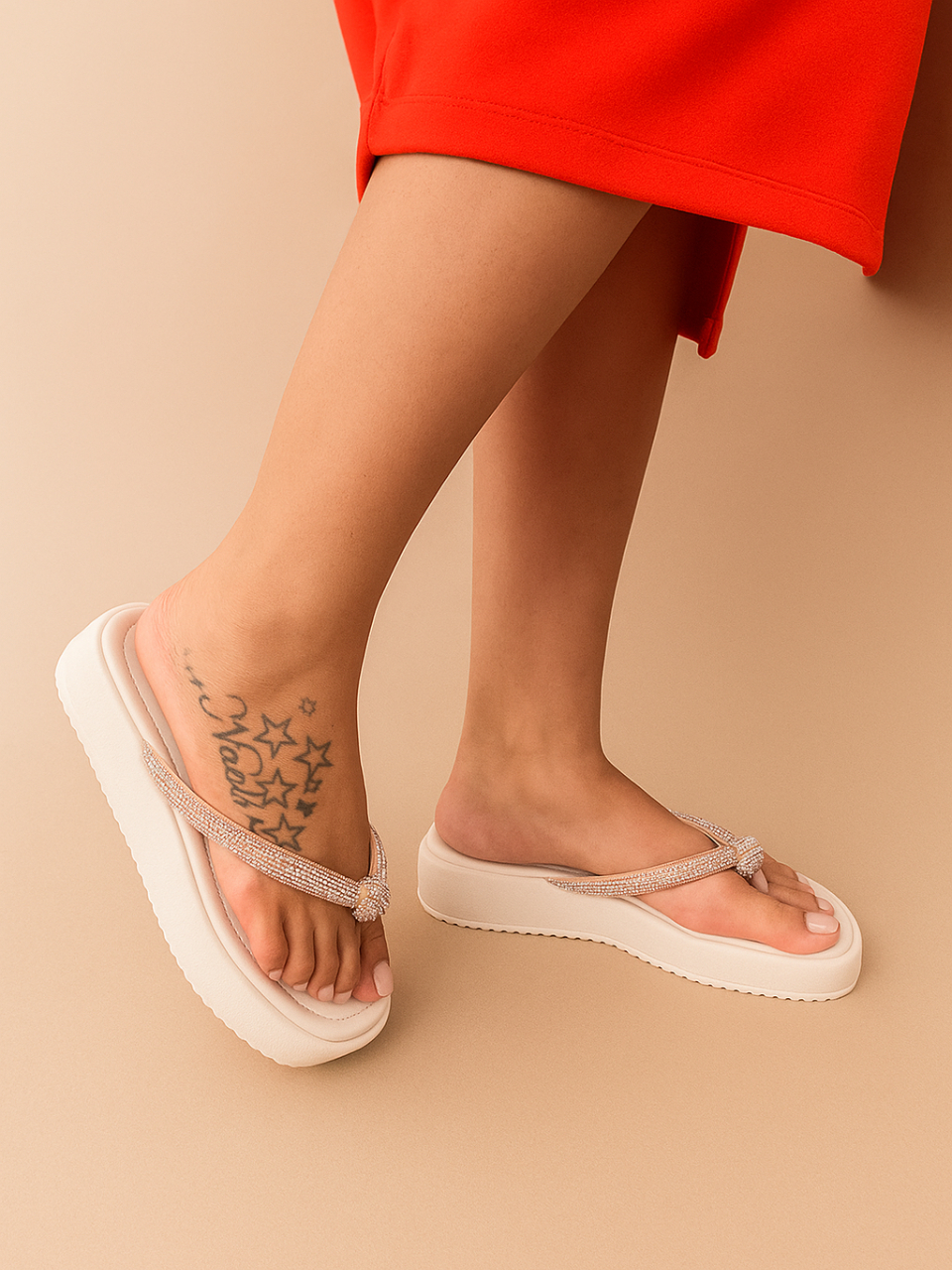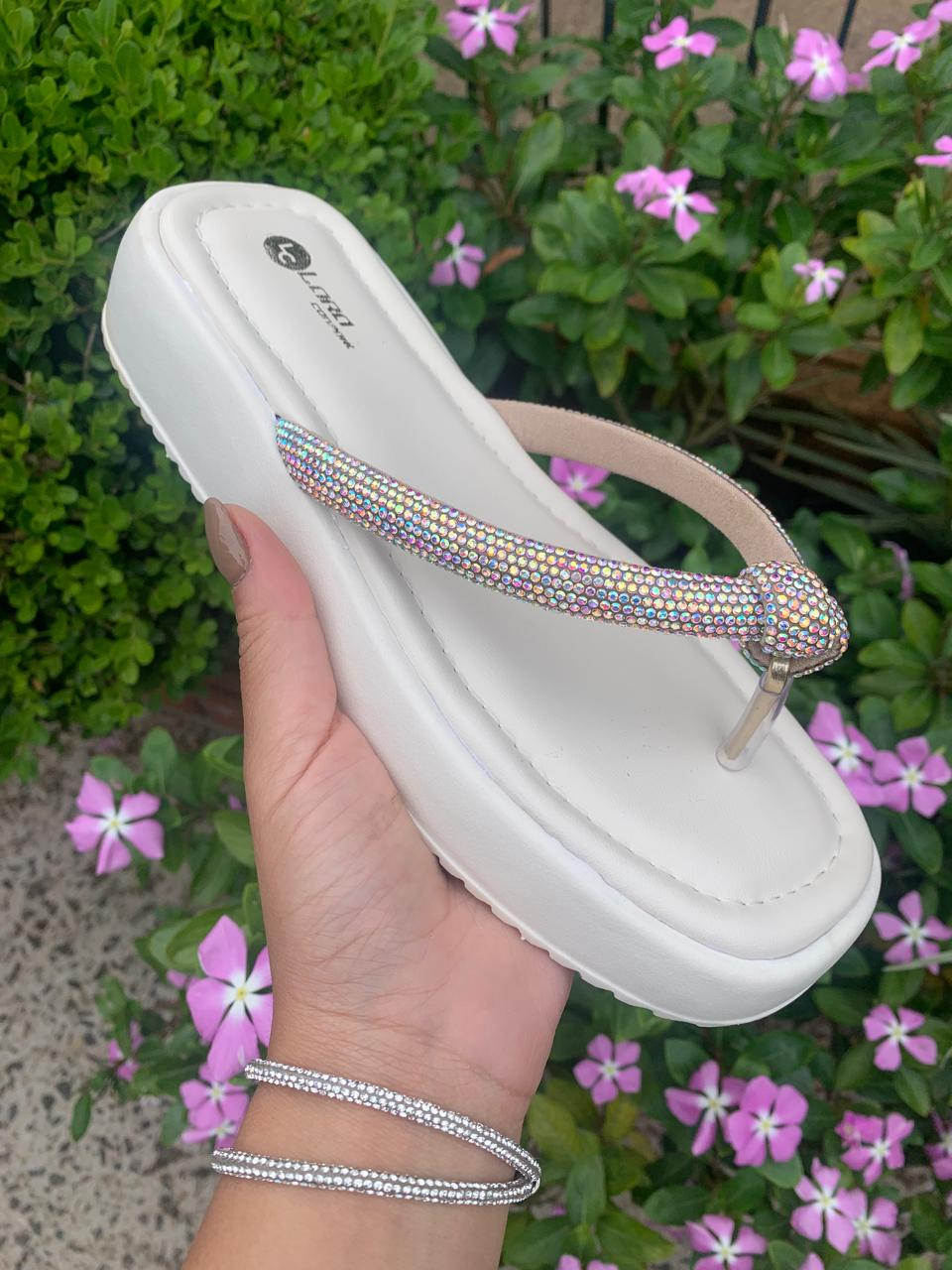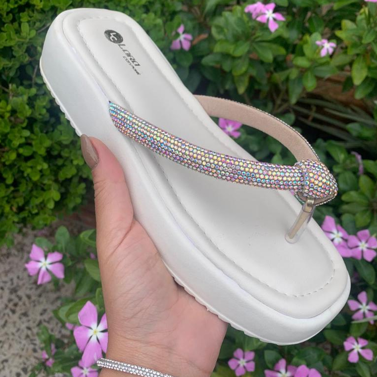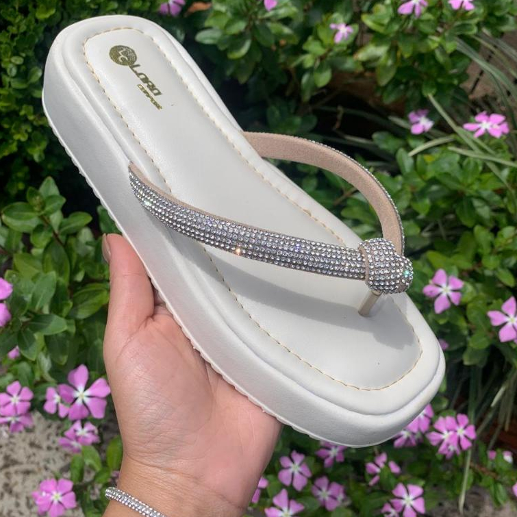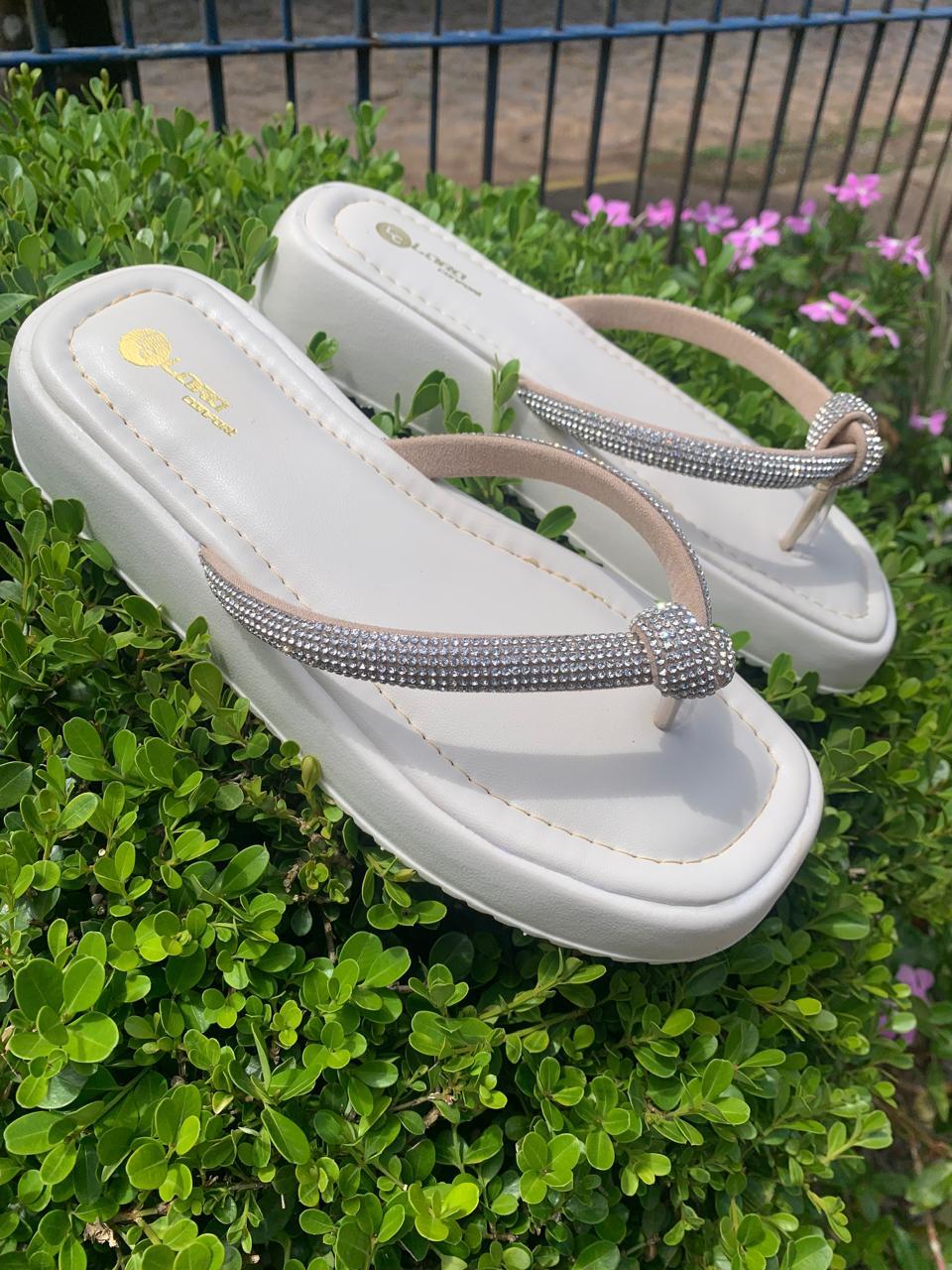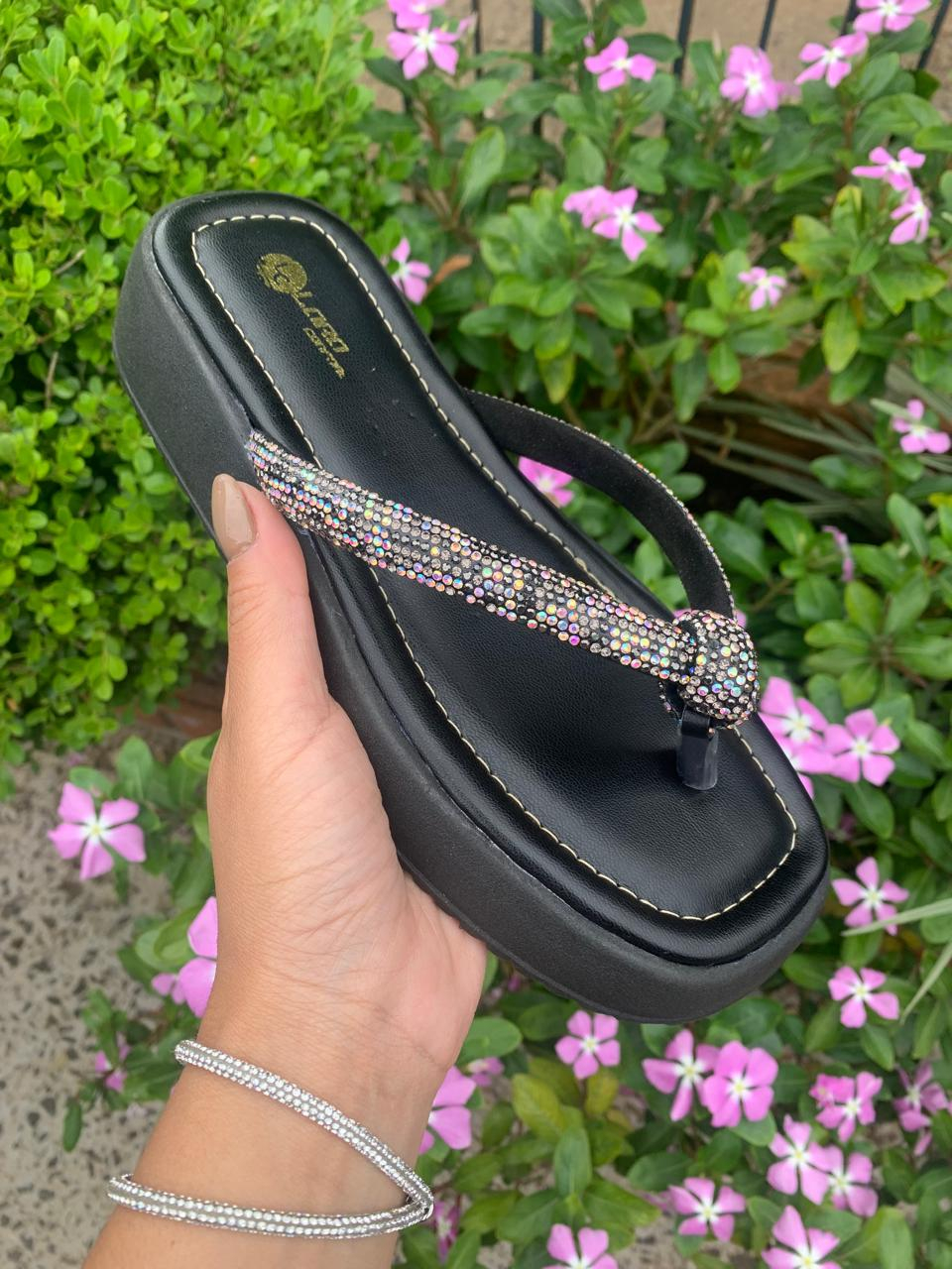 Chinelo Papete Feminino com Tira de Strass Original Sandália de Nó Confortável para o Fim de Ano