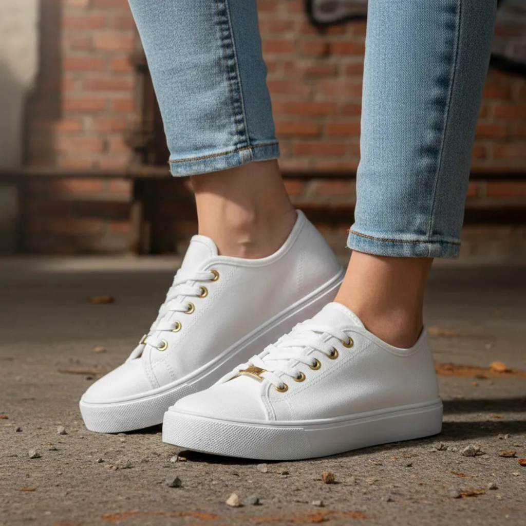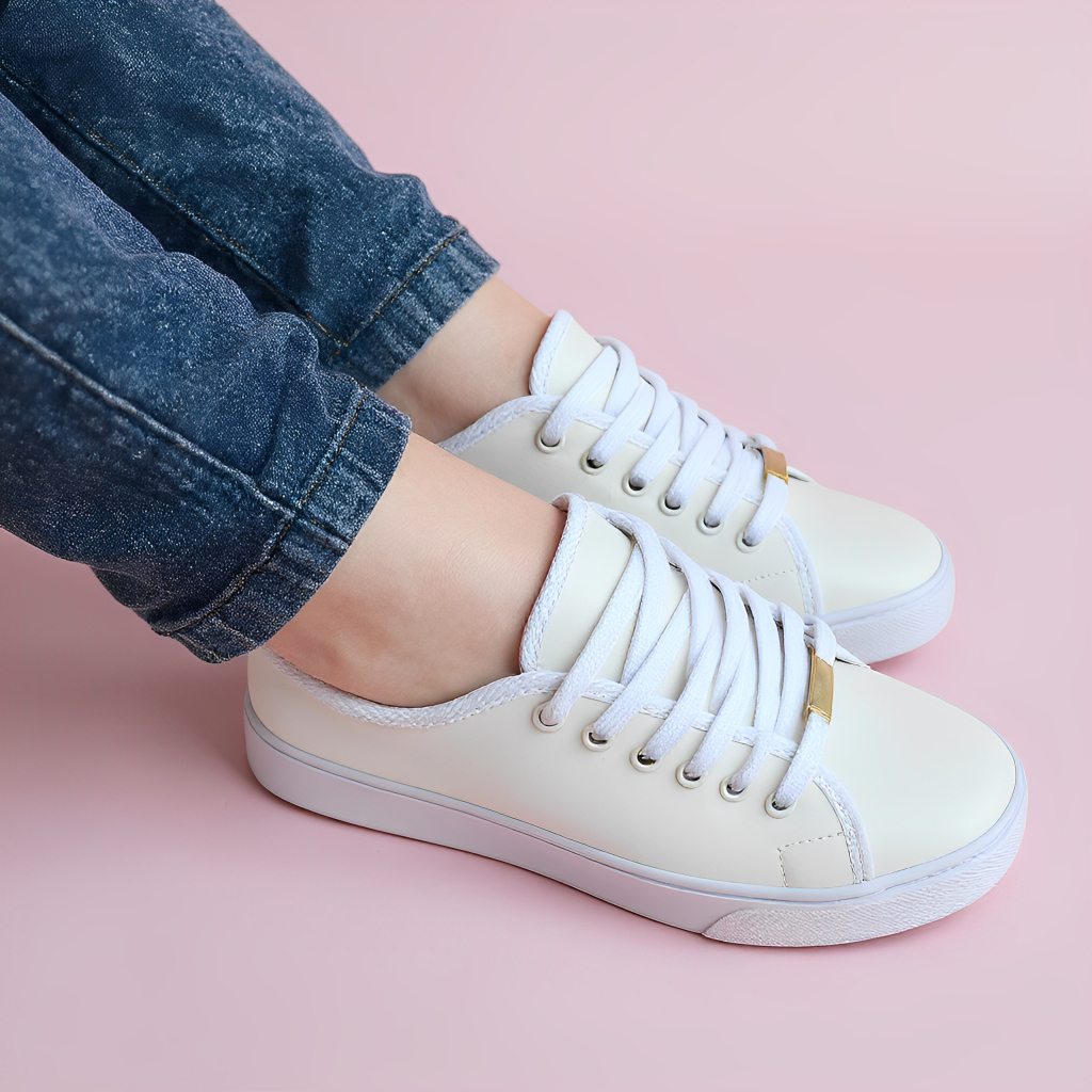 Tênis Feminino Casual - Tênis Branco Feminino - Sapato Feminino Preto