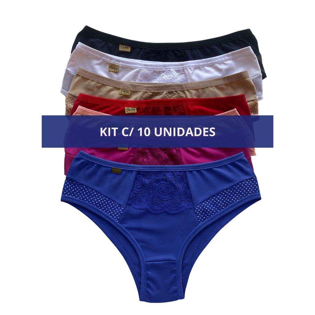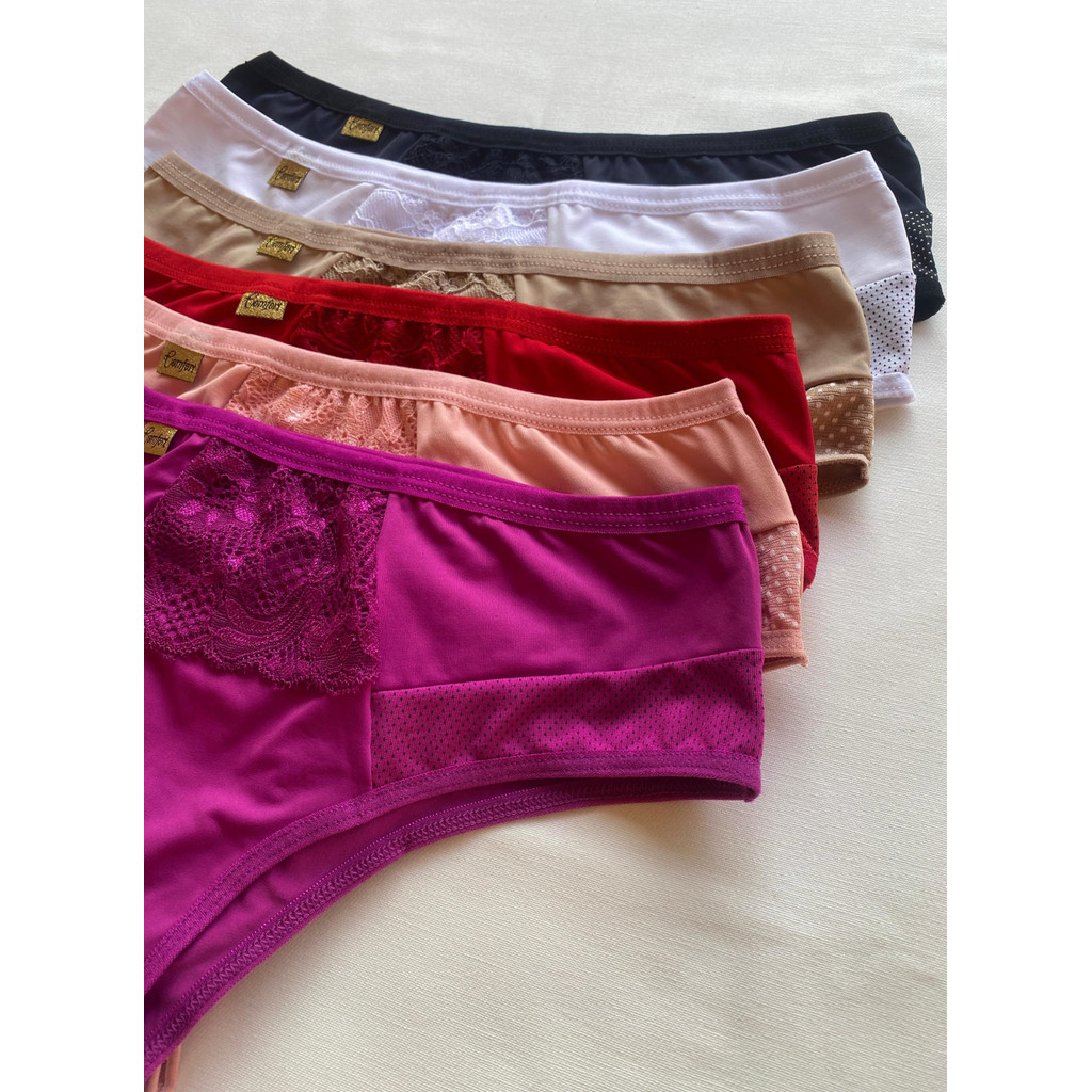 Kit Calcinha Cintura Alta Pós Parto Gestante Renda Lingerie Feminina Forro 100% Algodão