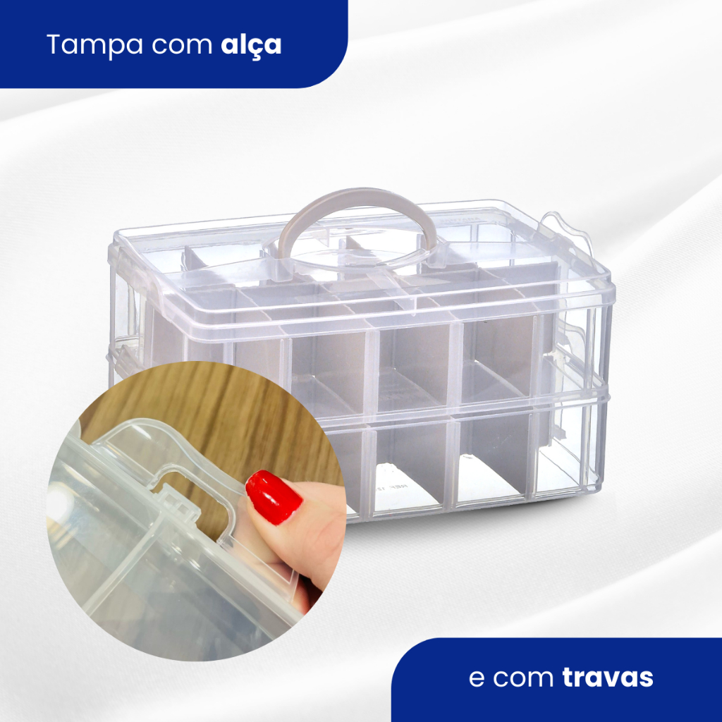 Maleta Organizadora de missangas e bijuterias Modular Com 20 Divisórias Ajustável Transparente