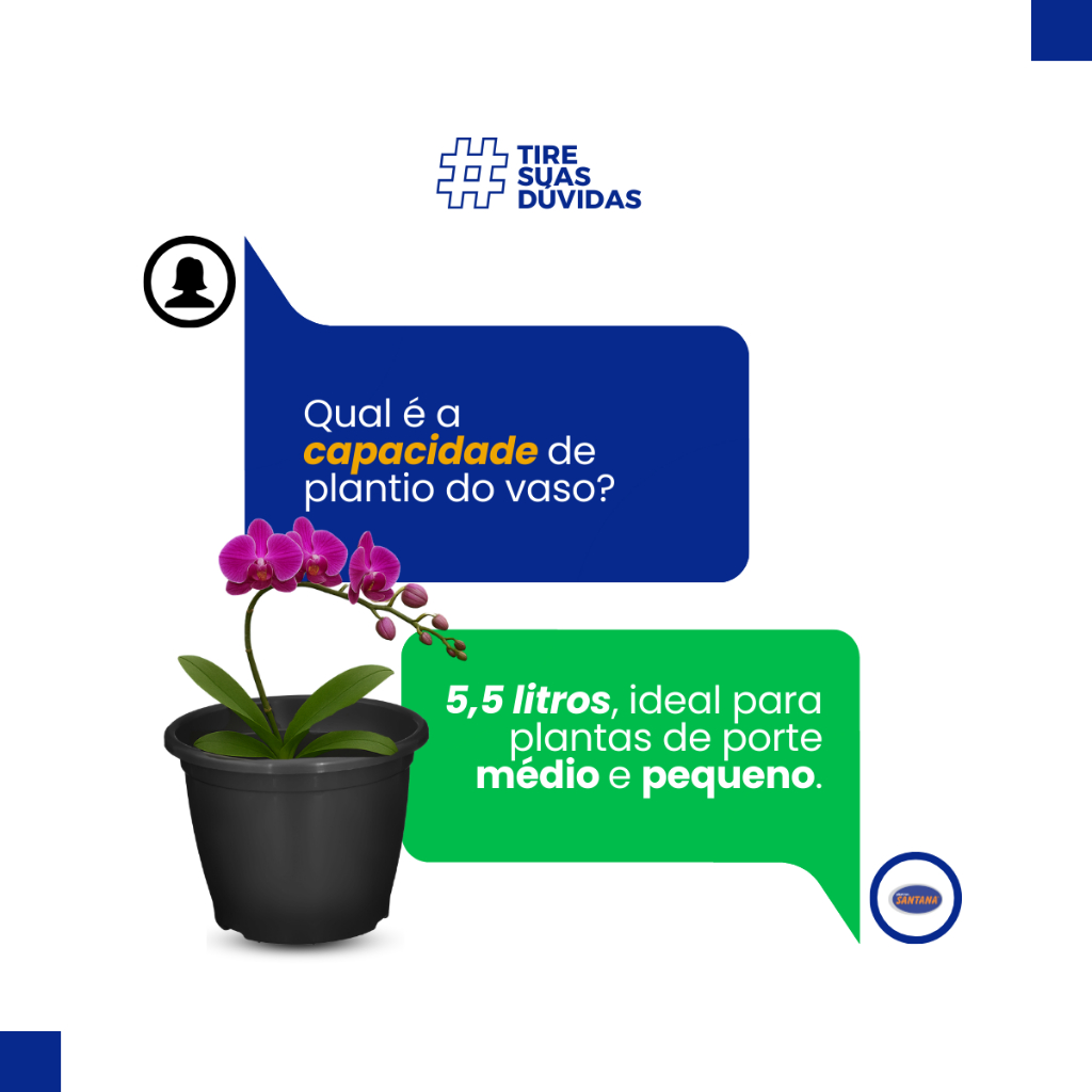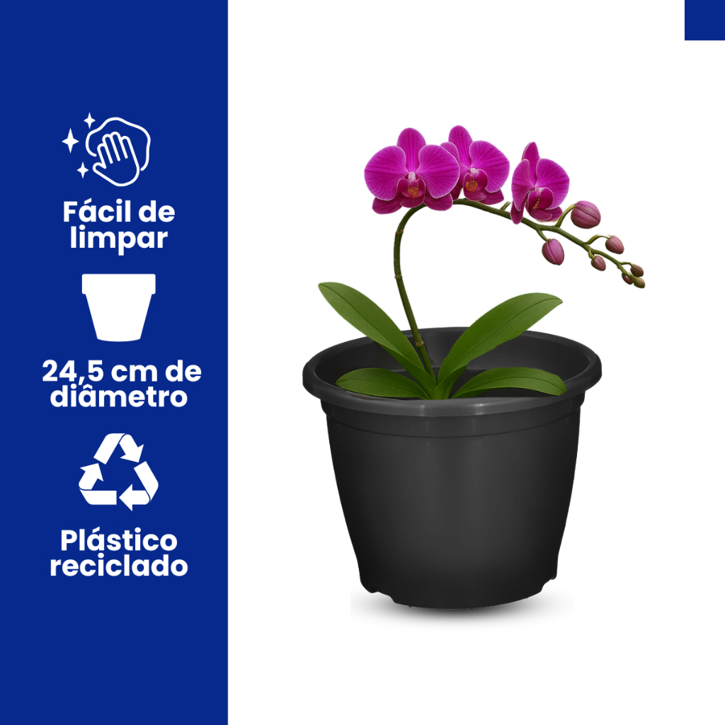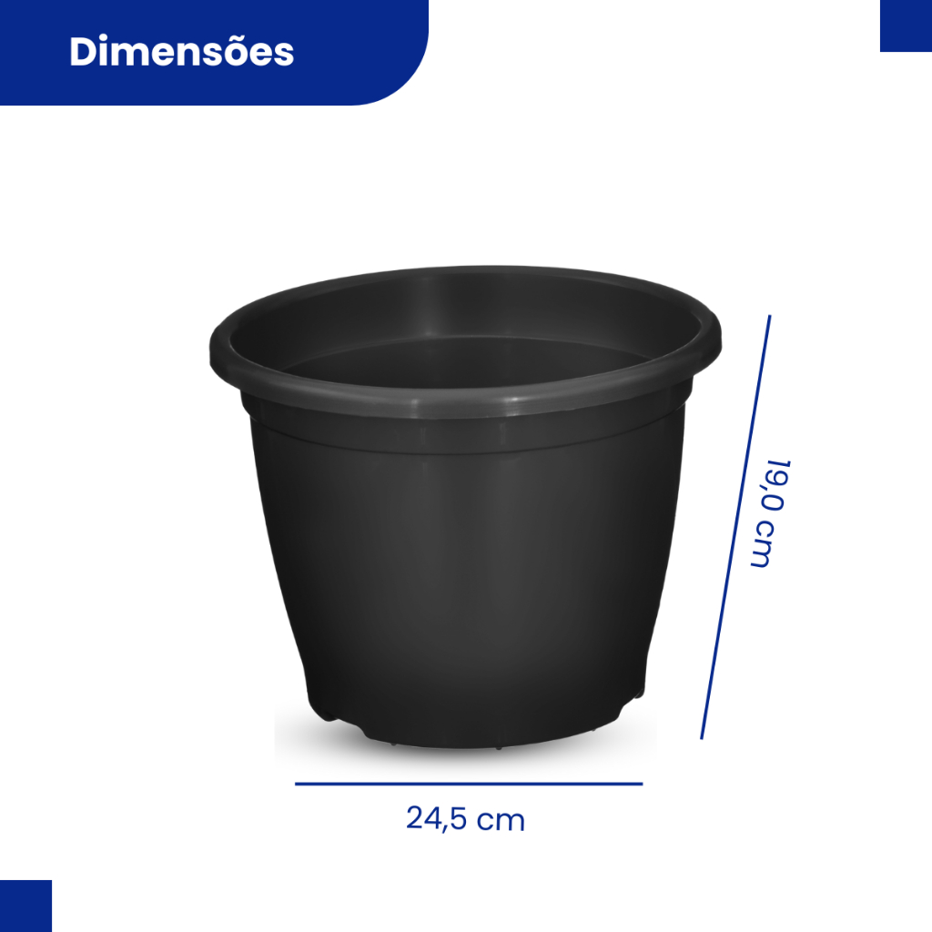 Kit 12 Vasos Pote Modelo 25 Plástico Reciclado Preto 5,5L x24,5cm Resistente para Floriculturas