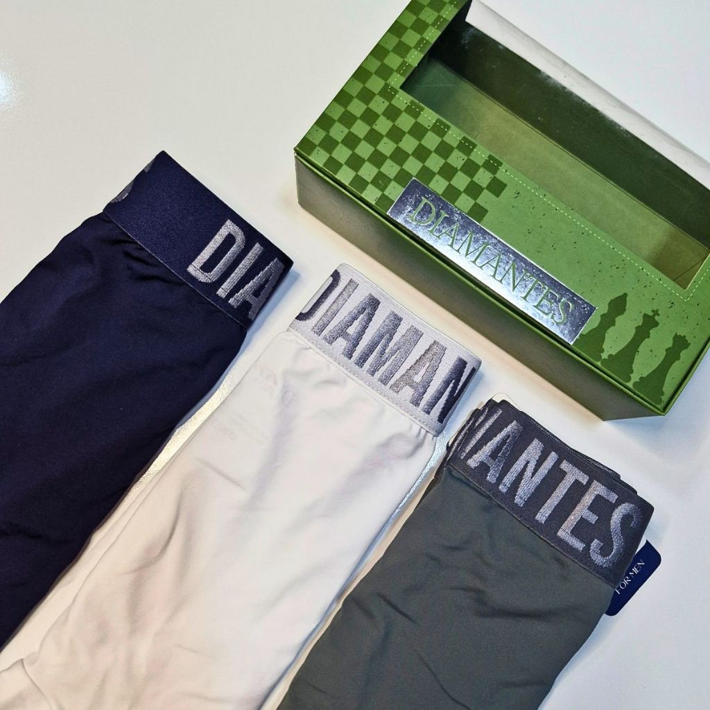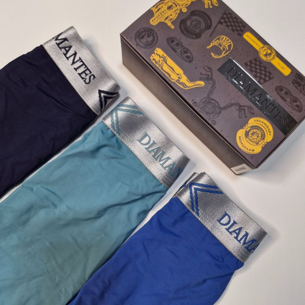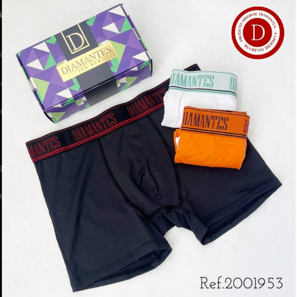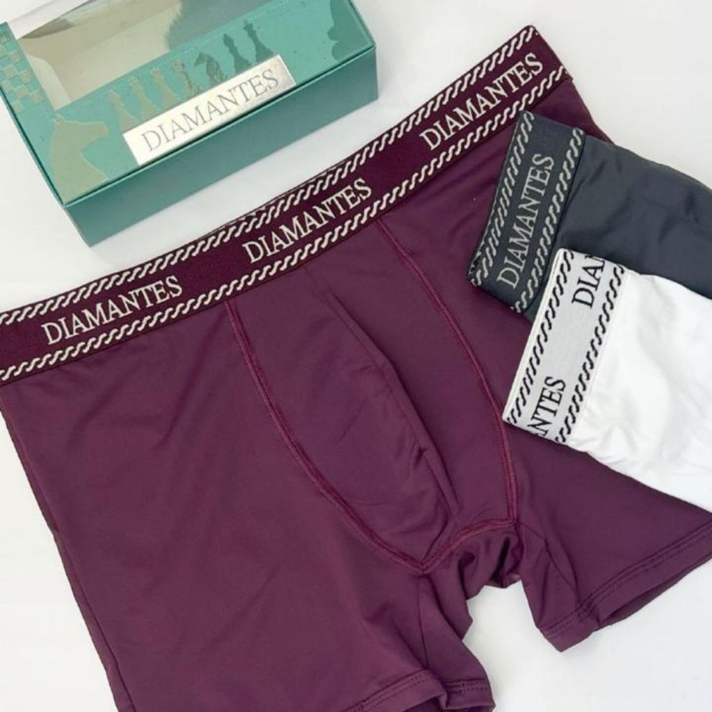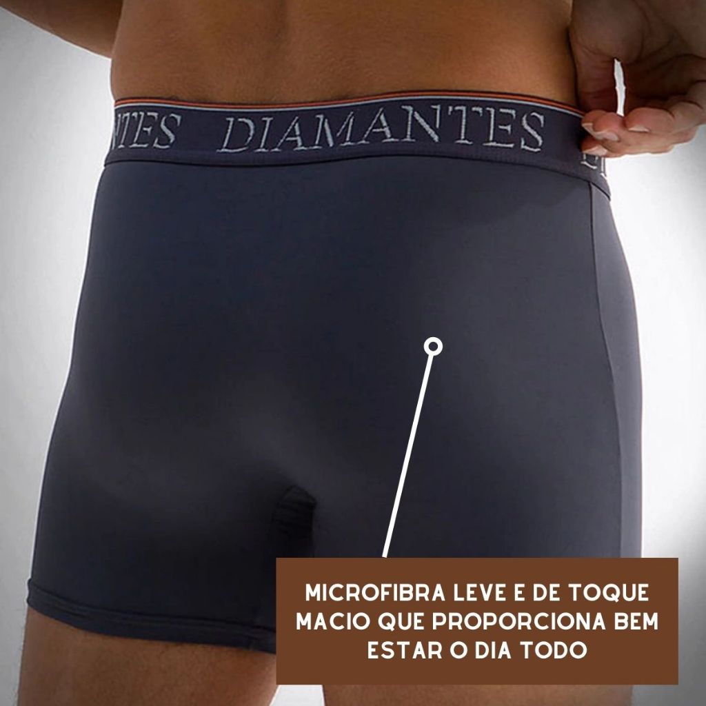 Kit com 3 Cuecas Boxer Masculinas Diamantes Lingerie Modelo Perna Longa de Microfibra Premium