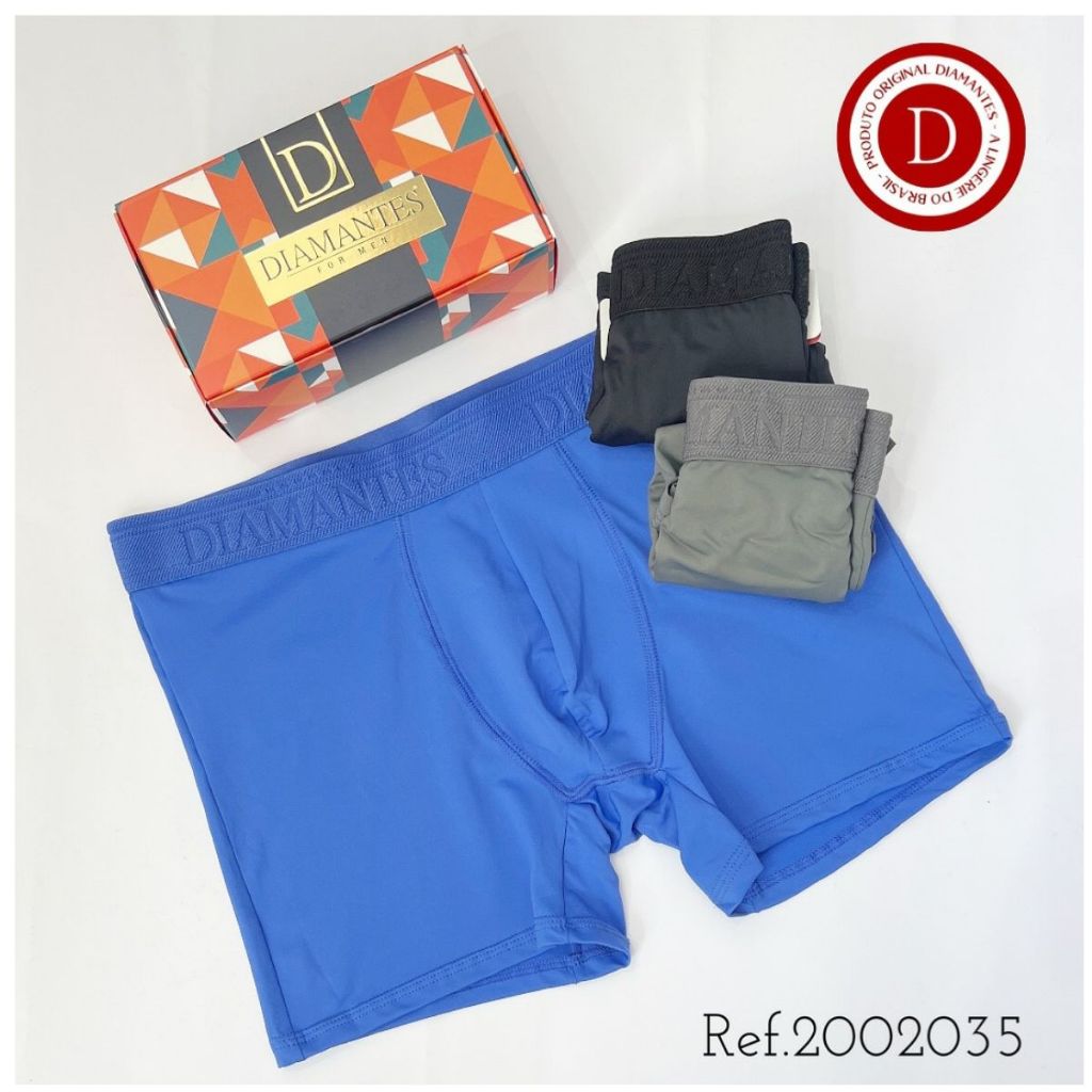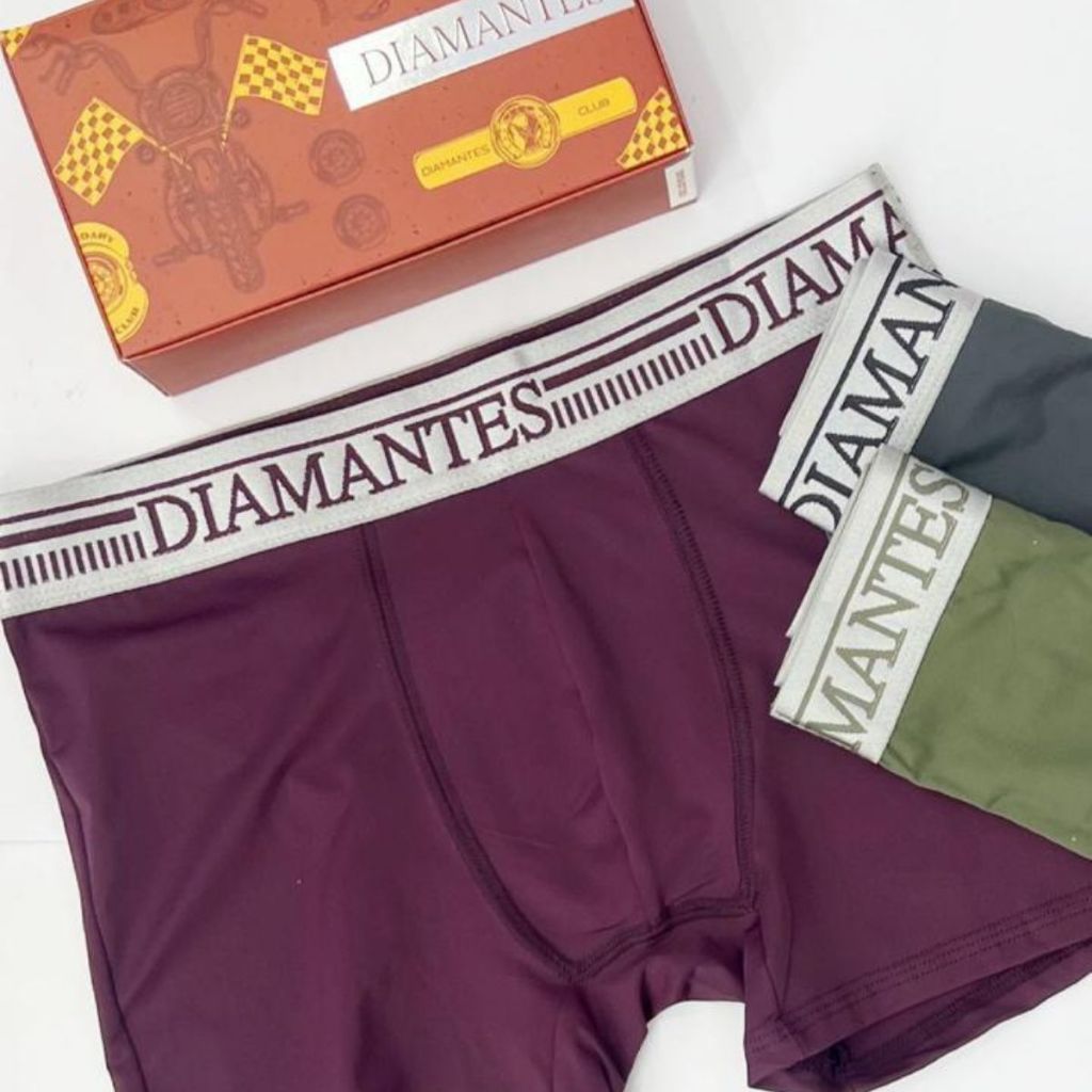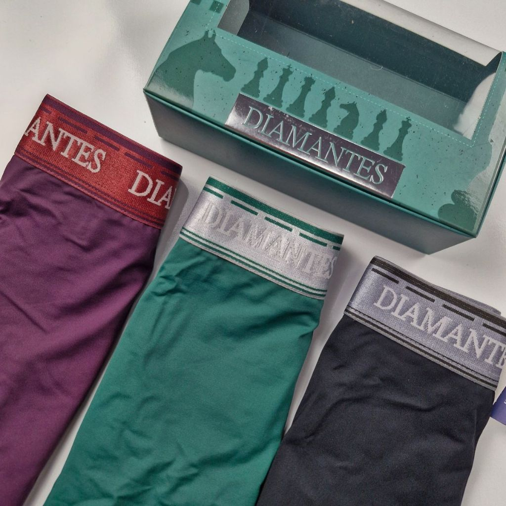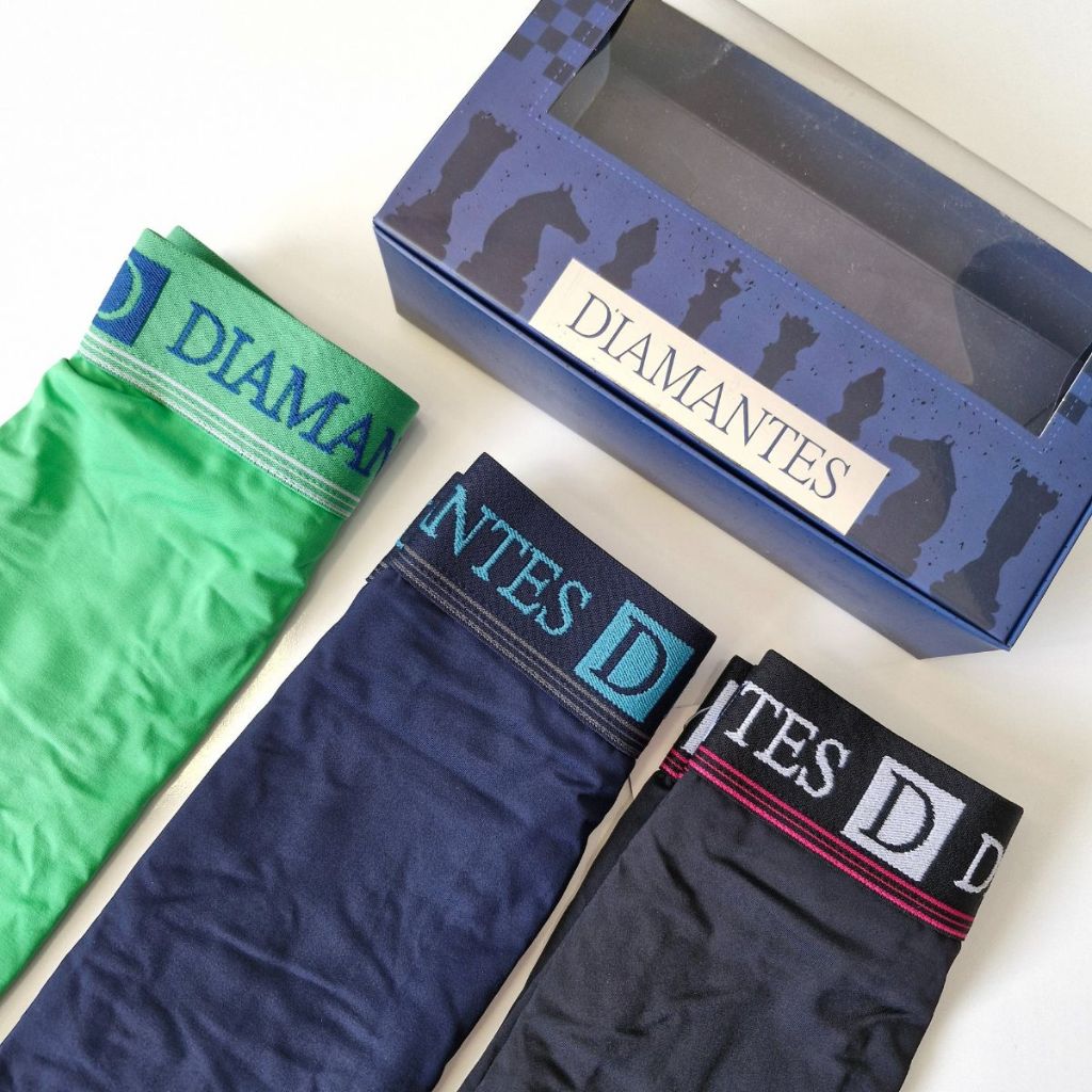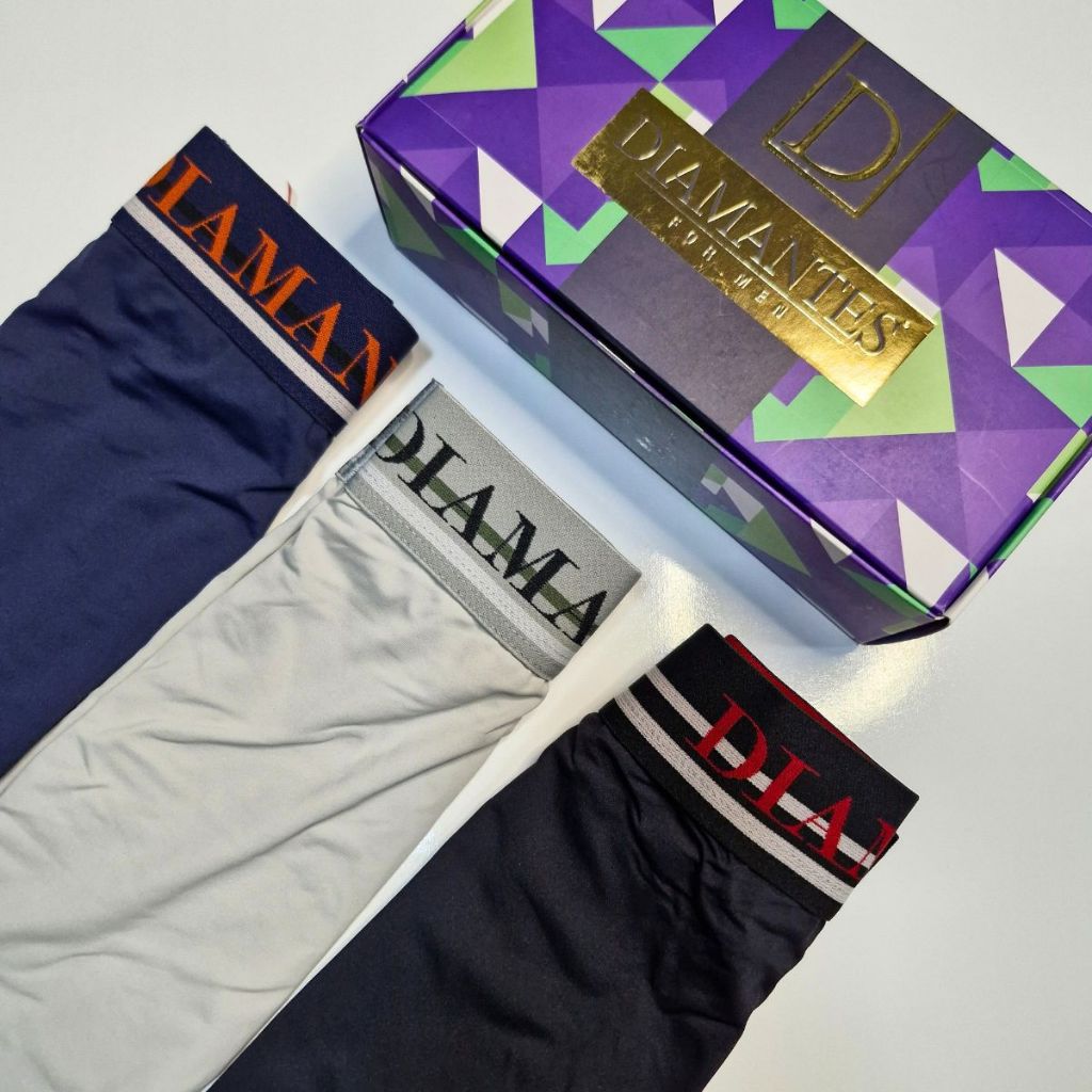 Kit com 3 Cuecas Boxer Masculinas Diamantes Lingerie Modelo Perna Longa de Microfibra Premium