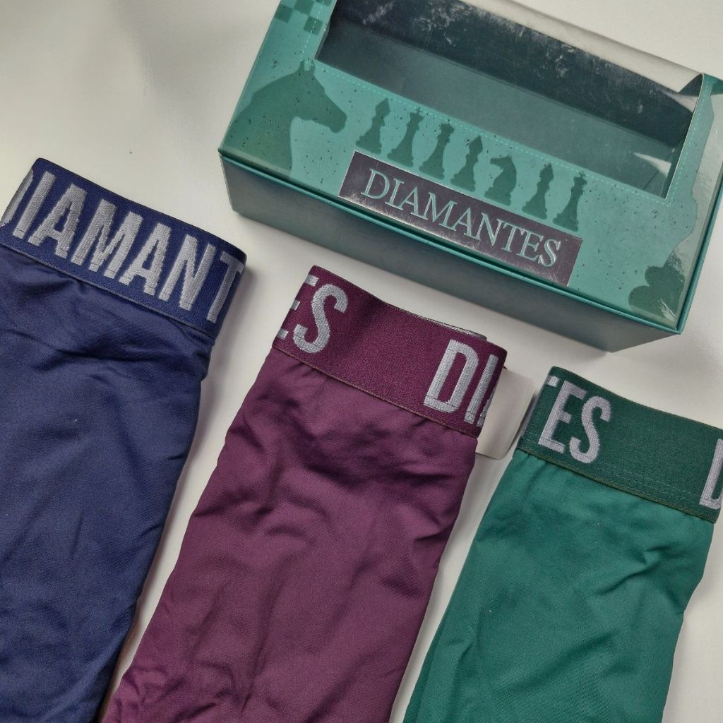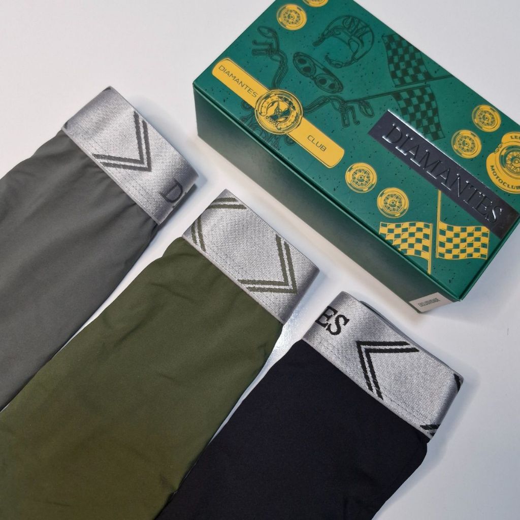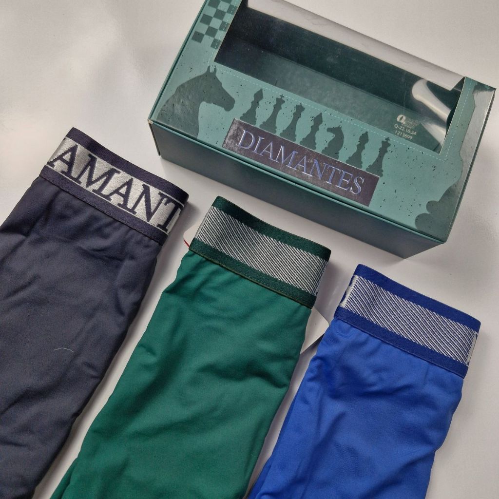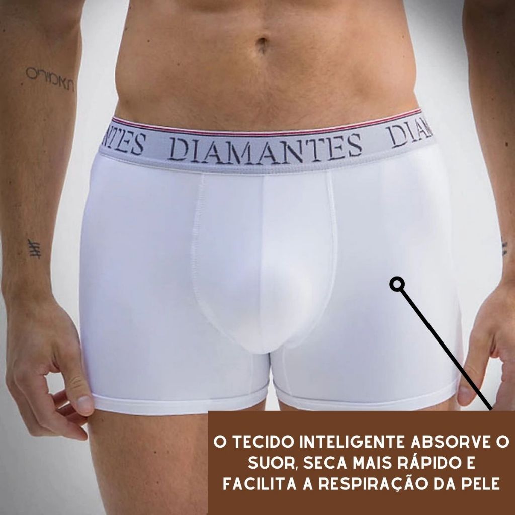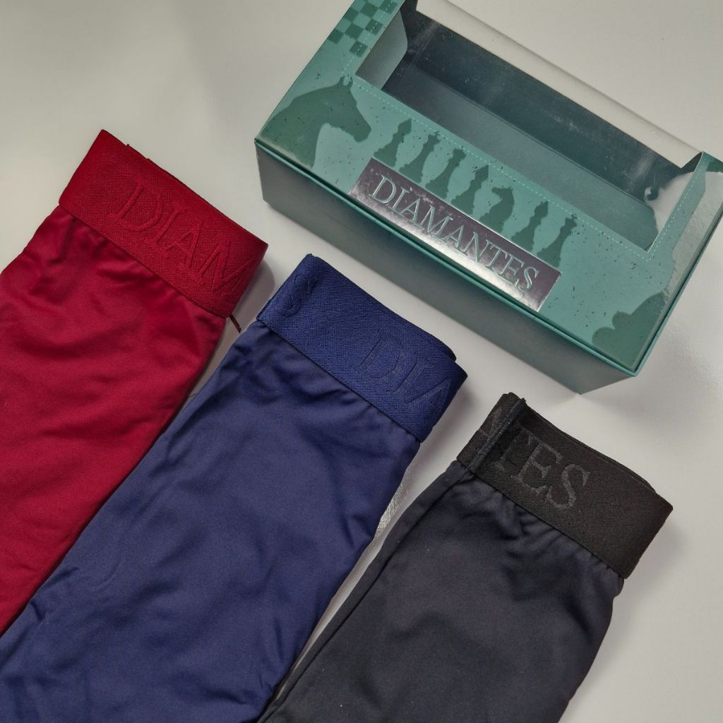 Kit com 3 Cuecas Boxer Masculinas Diamantes Lingerie Modelo Perna Longa de Microfibra Premium