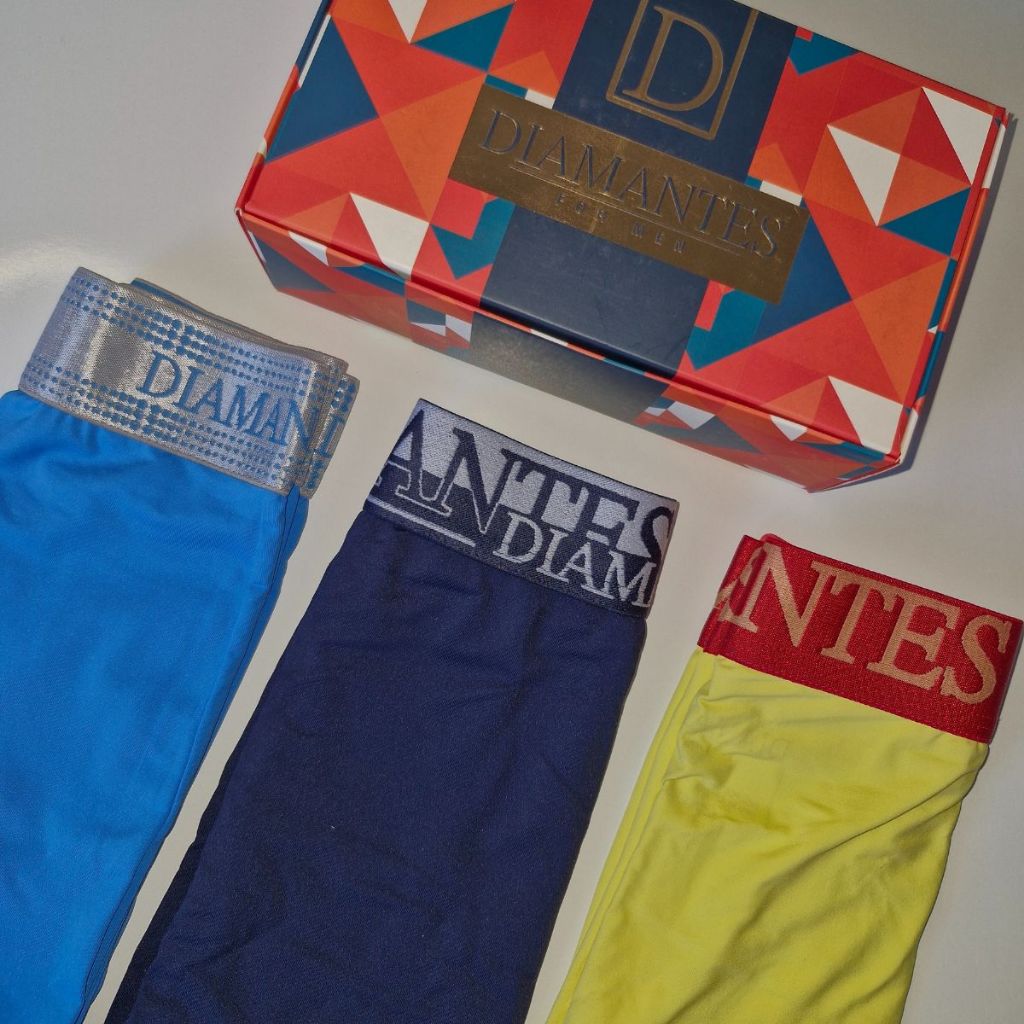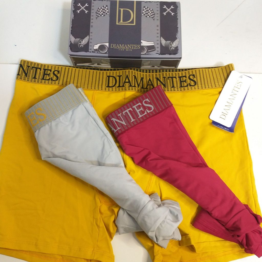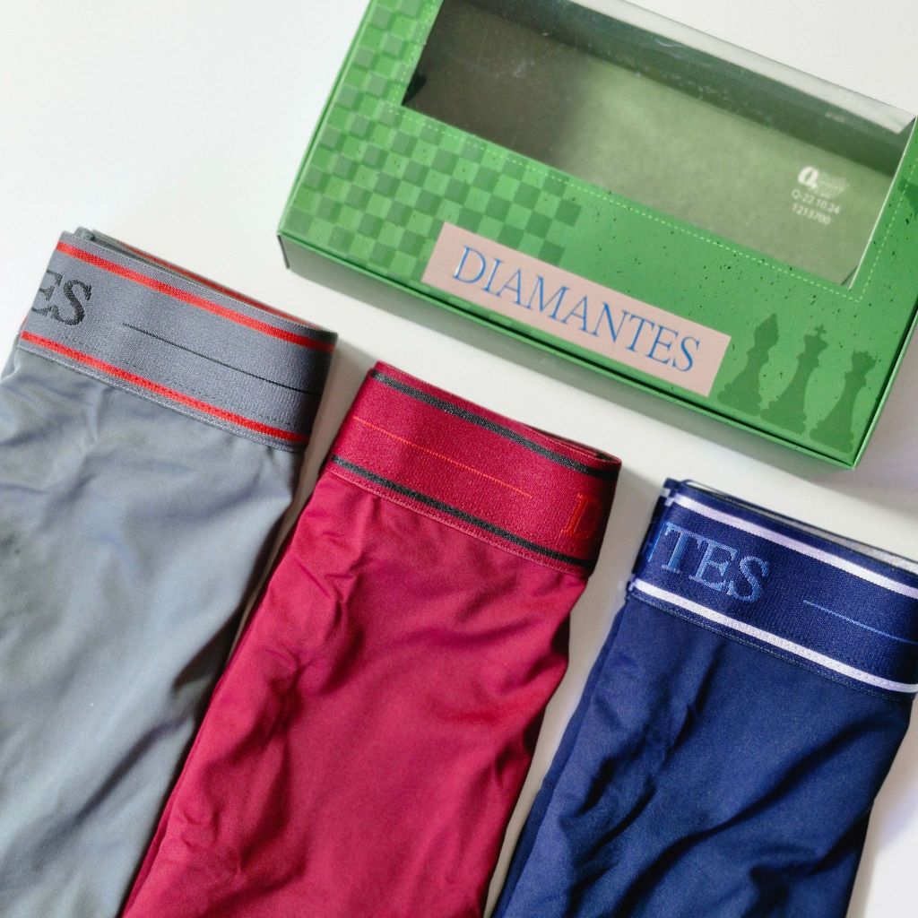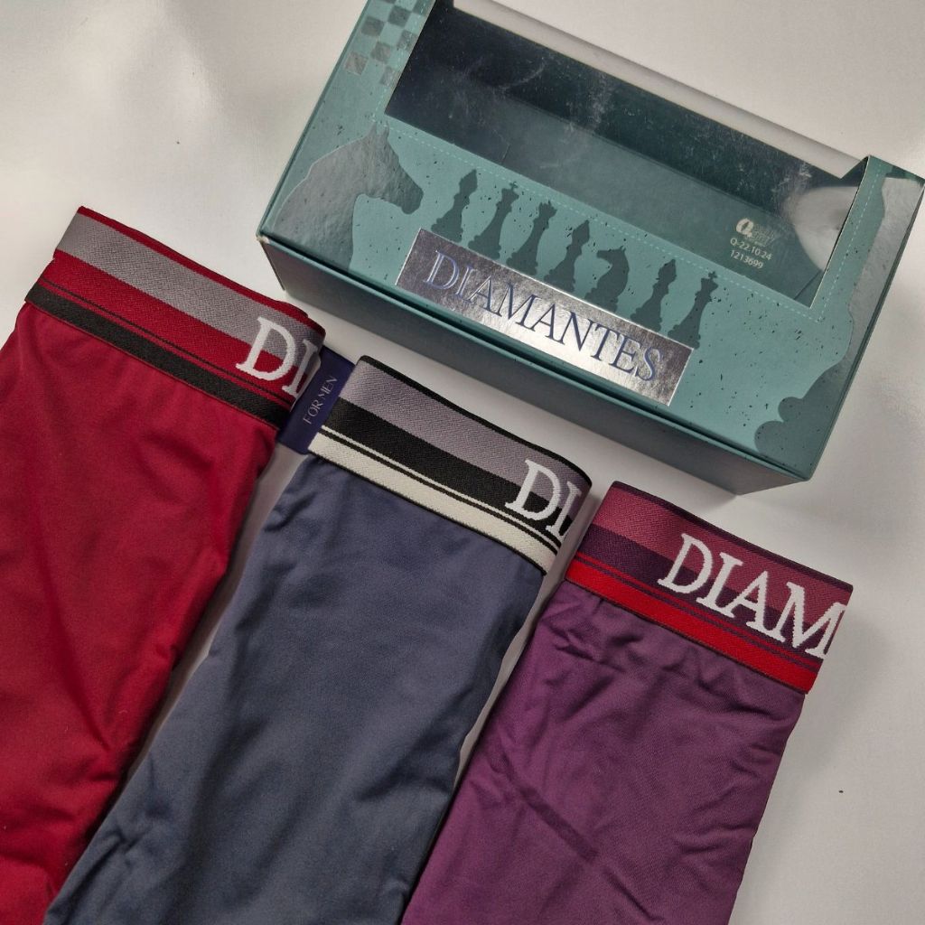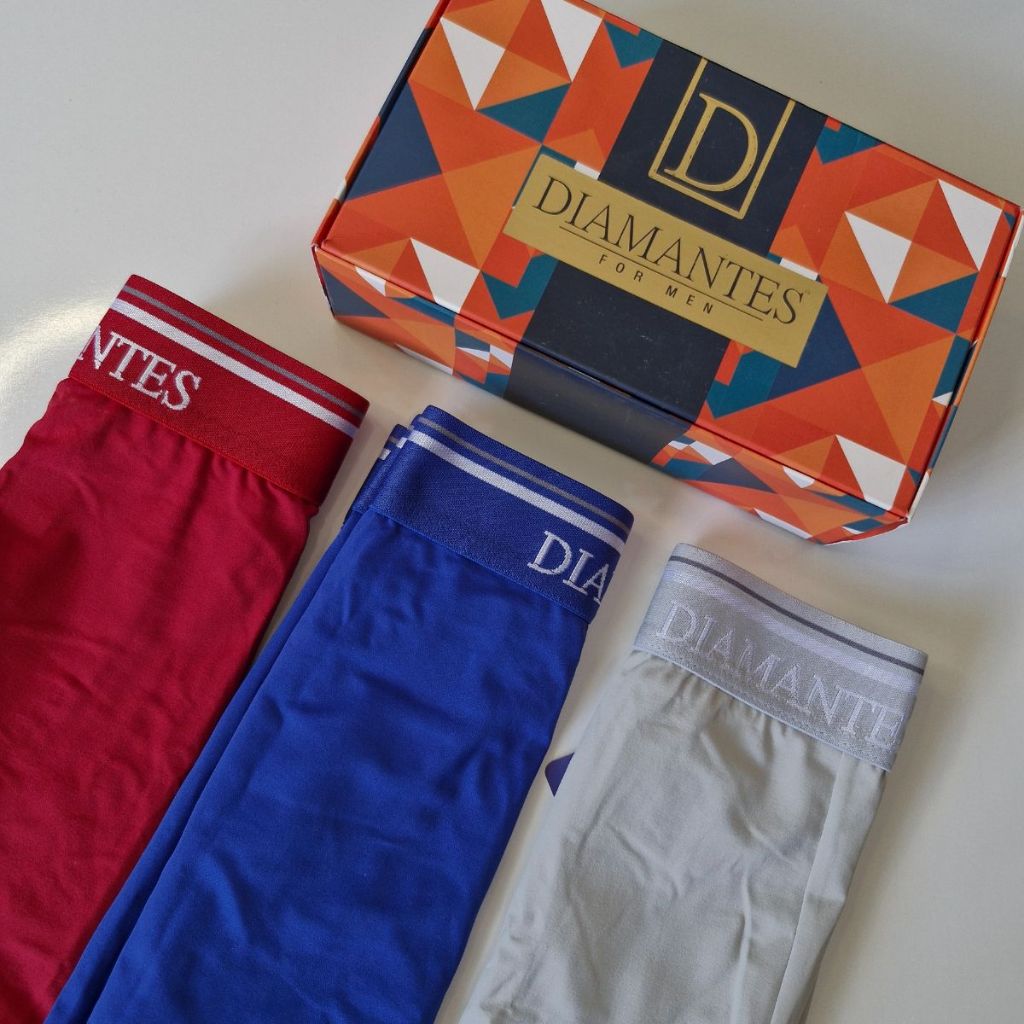 Kit com 3 Cuecas Boxer Masculinas Diamantes Lingerie Modelo Perna Longa de Microfibra Premium