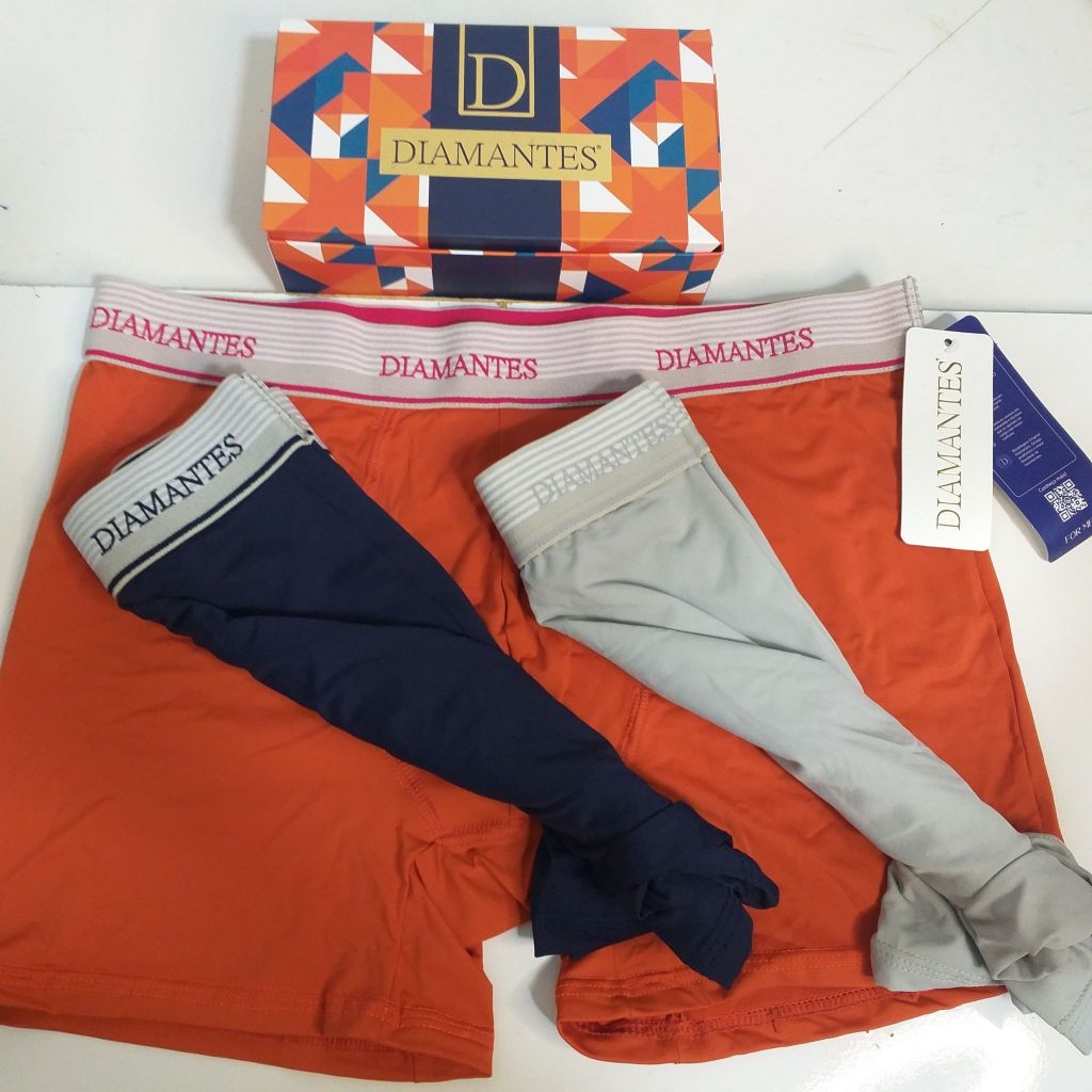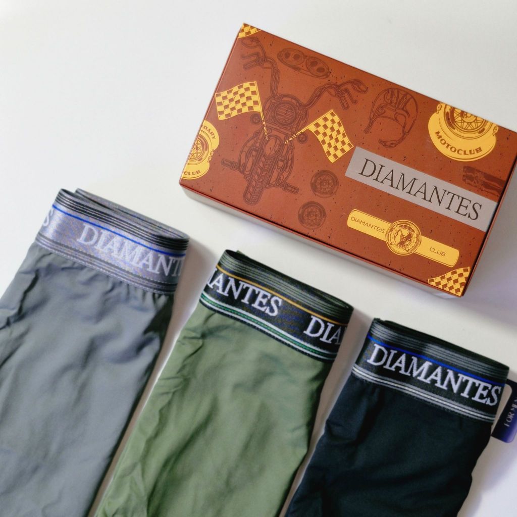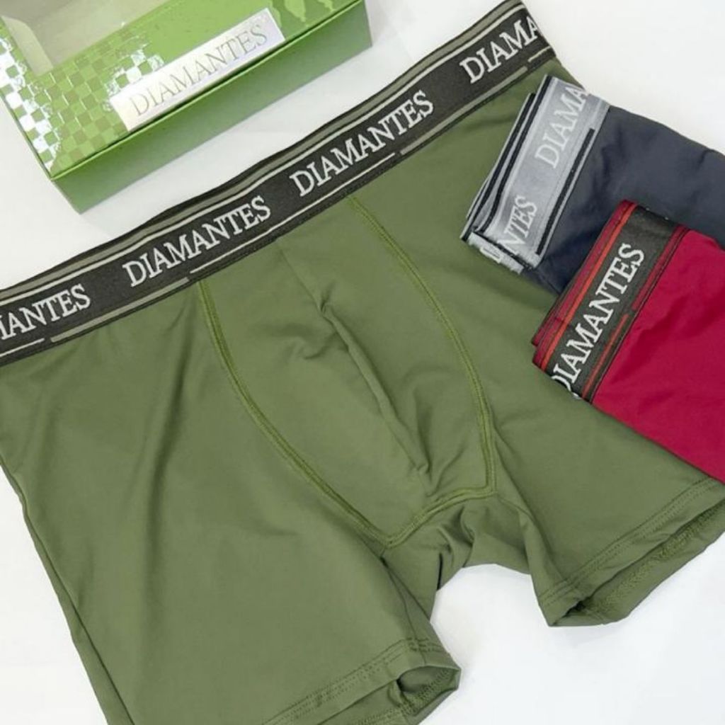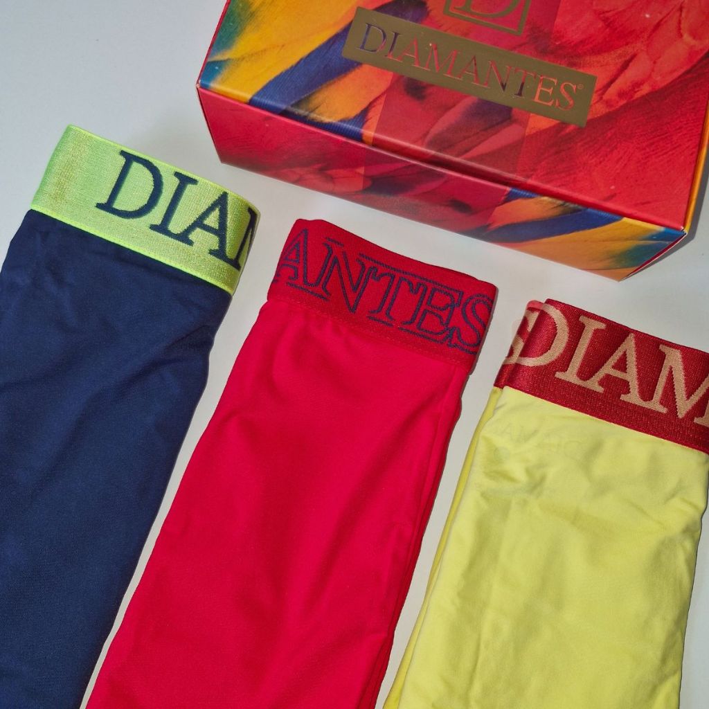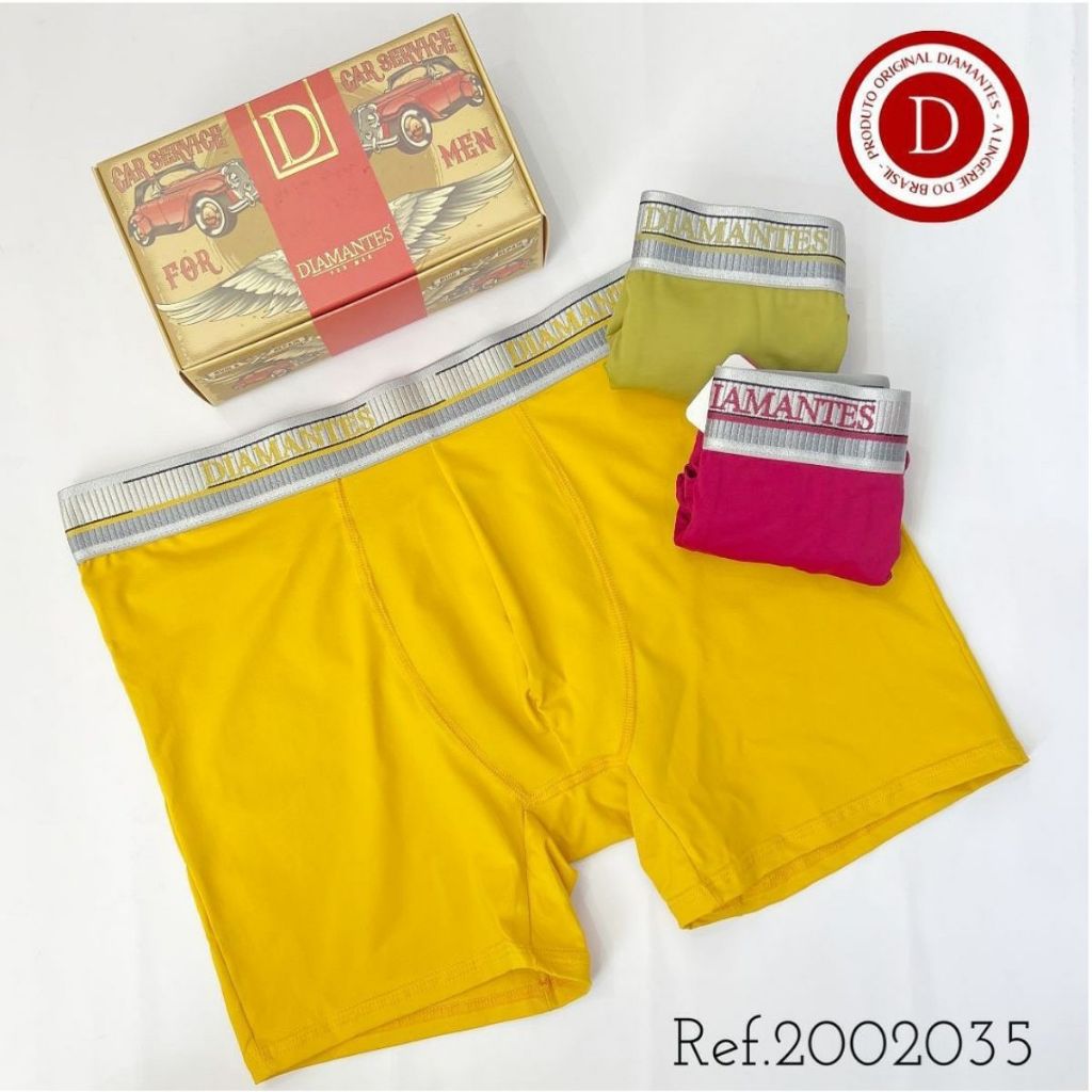 Kit com 3 Cuecas Boxer Masculinas Diamantes Lingerie Modelo Perna Longa de Microfibra Premium