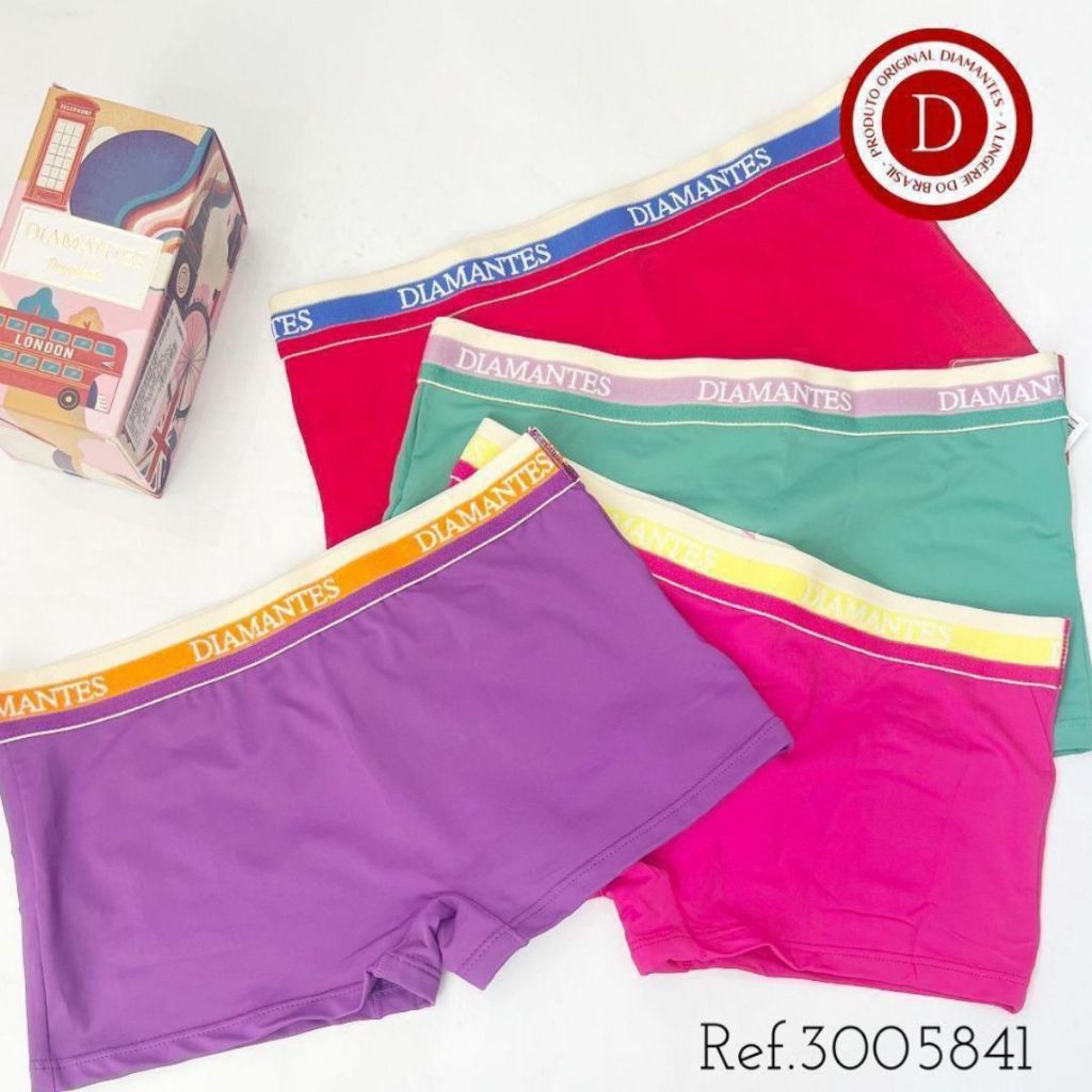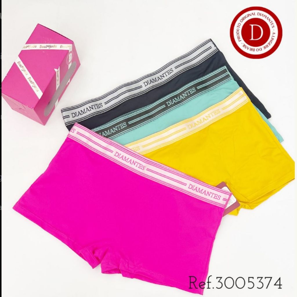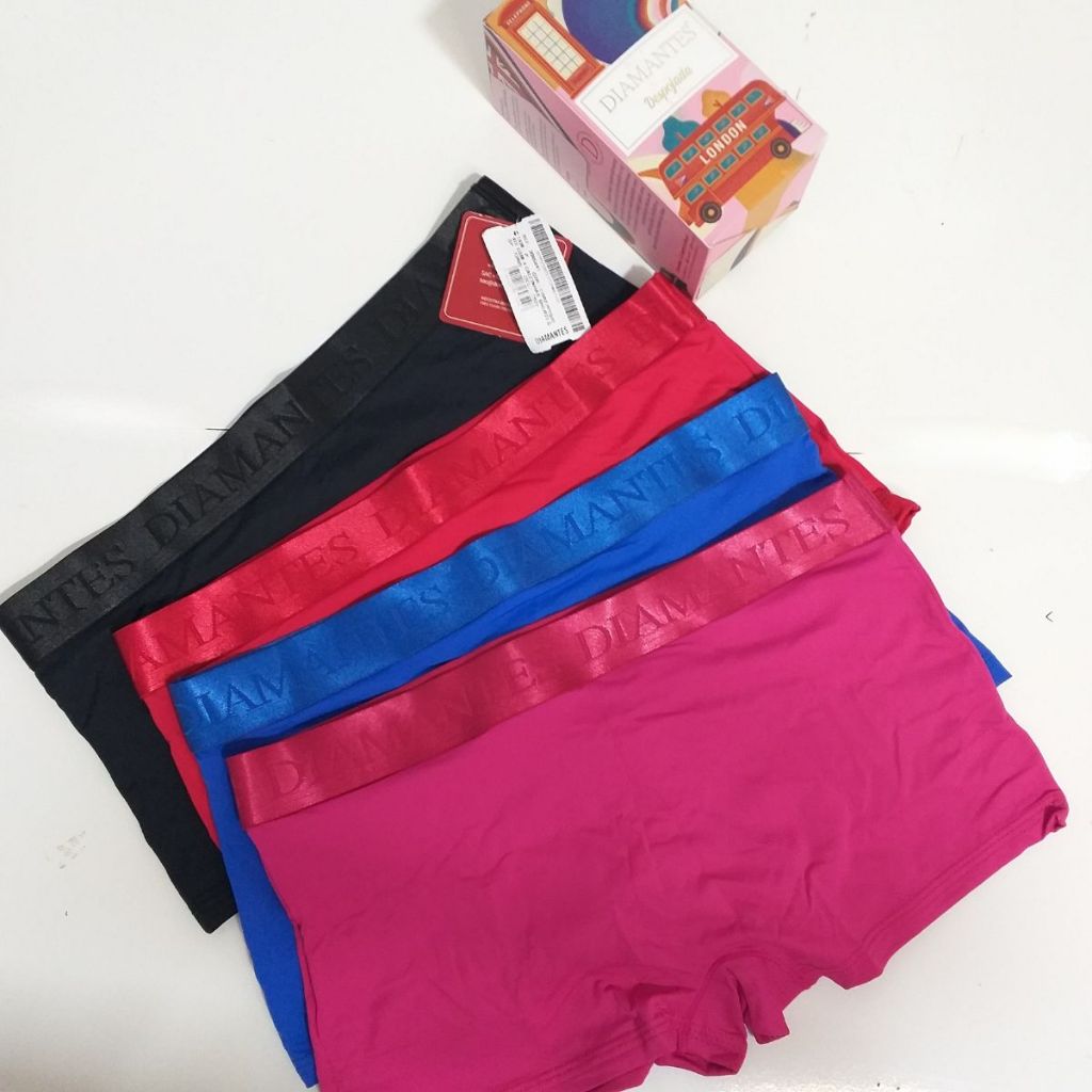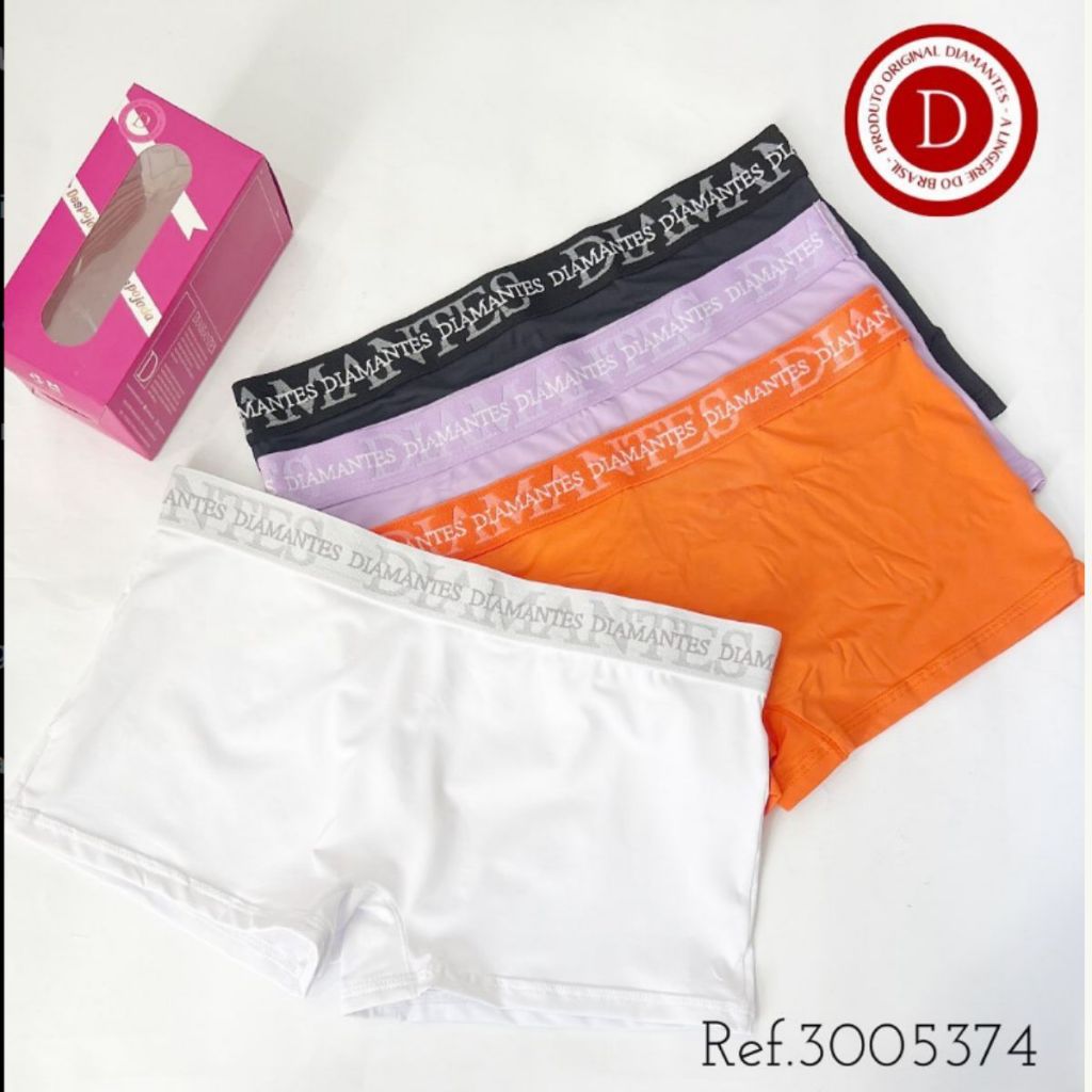 Kit 4 Calcinhas Boxer Diamantes Lingerie Peças Conforto Total: Ideal para o seu dia a dia!
