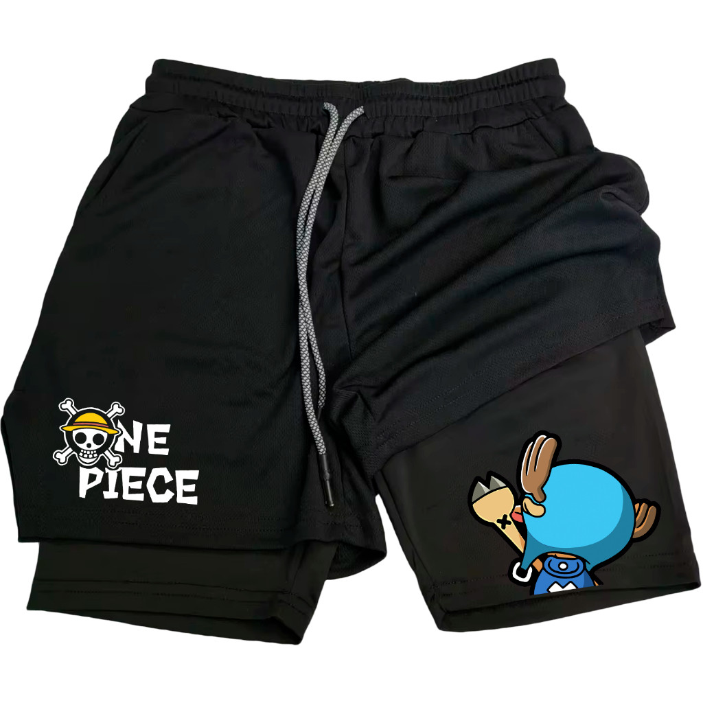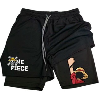 Bermuda Anime One Piece Personagens Compressão 2 em 1 Masculino Com Bolso Secreto